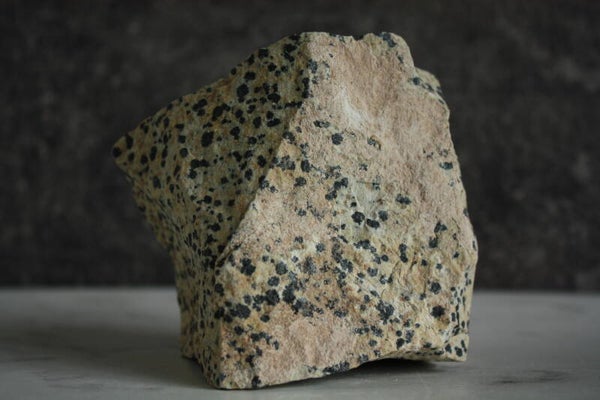 Ruw stuk dalmatiër jaspis uit Mexico.