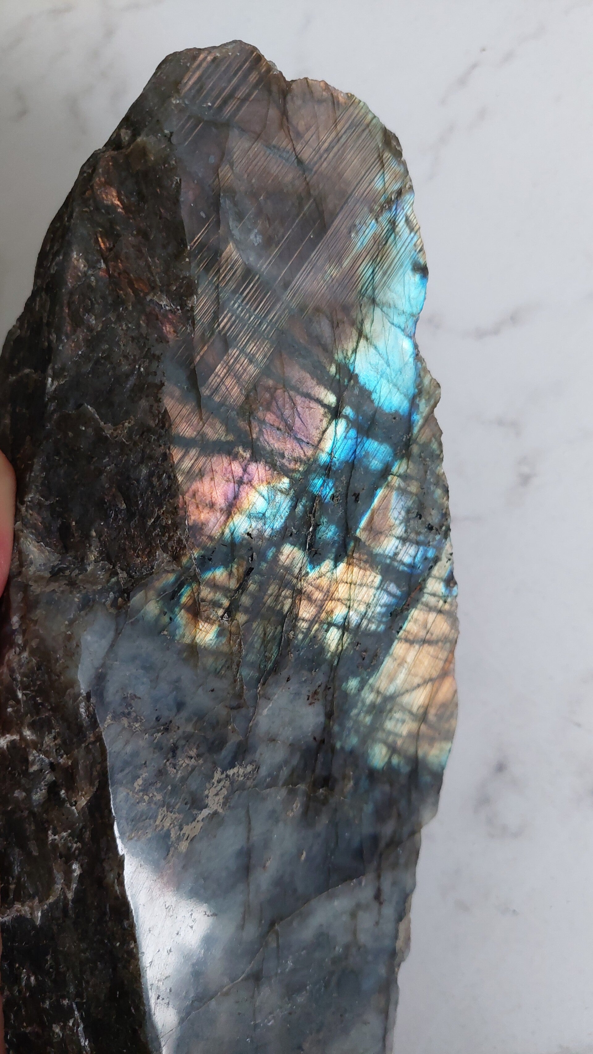 Werking: Labradoriet staat voor rust en intuïtie. Het is een sterk beschermende en spirituele steen. Labradoriet beschermt het eigen energieveld tegen negatieve invloeden uit de omgeving en mensen die energie bij je weghalen. Vandaar dat labradoriet een gewilde steen is bij HSP'ers. Daarnaast vermindert de steen angst en geeft het kracht en zelfvertrouwen.