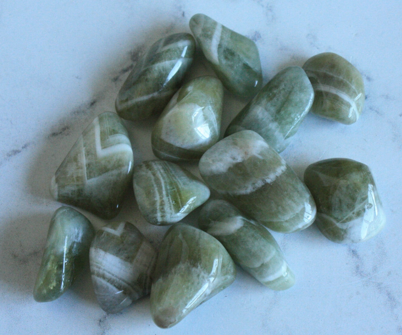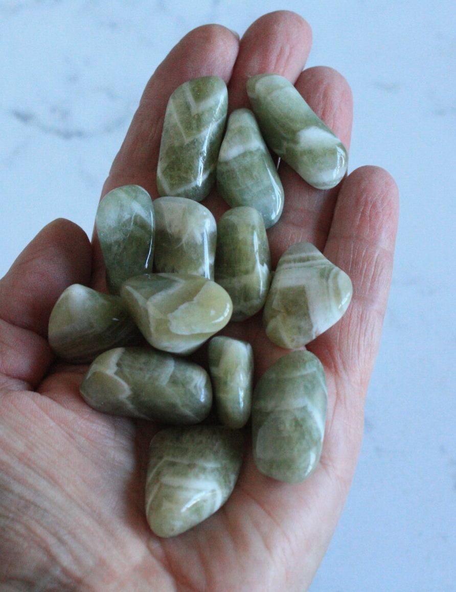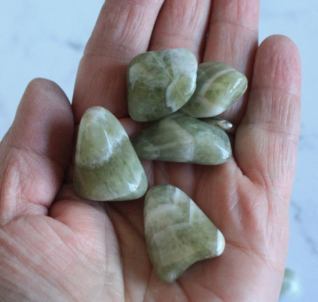 Prasioliet trommelsteen (groene amethist)