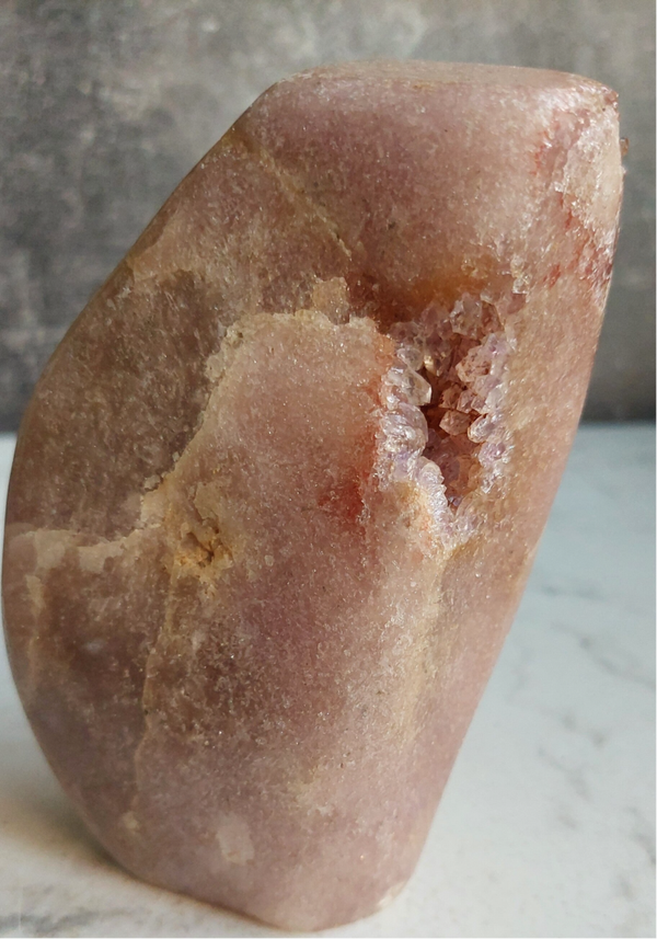 Werking: Roze amethist staat voor vrede en kalmte. De steen heeft een hele zachte energie en straalt sterke vibraties uit die je spiritueel beschermen.
