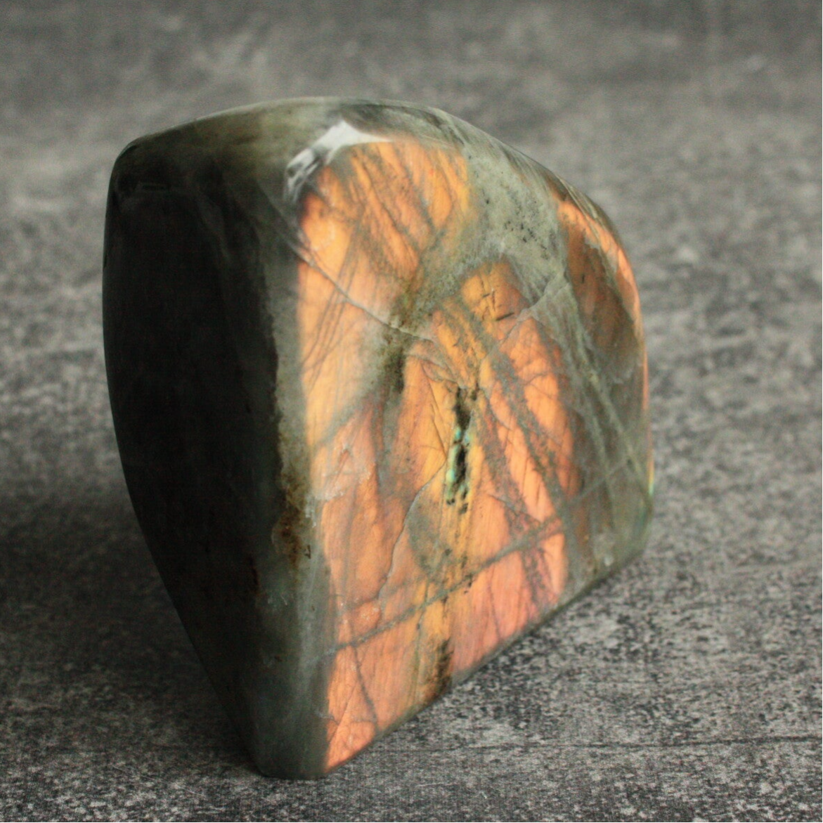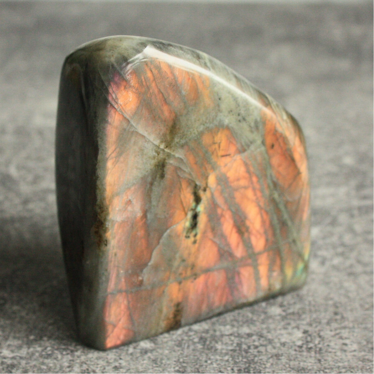 Labradoriet freeform uit Madagascar met zeldzame flash!