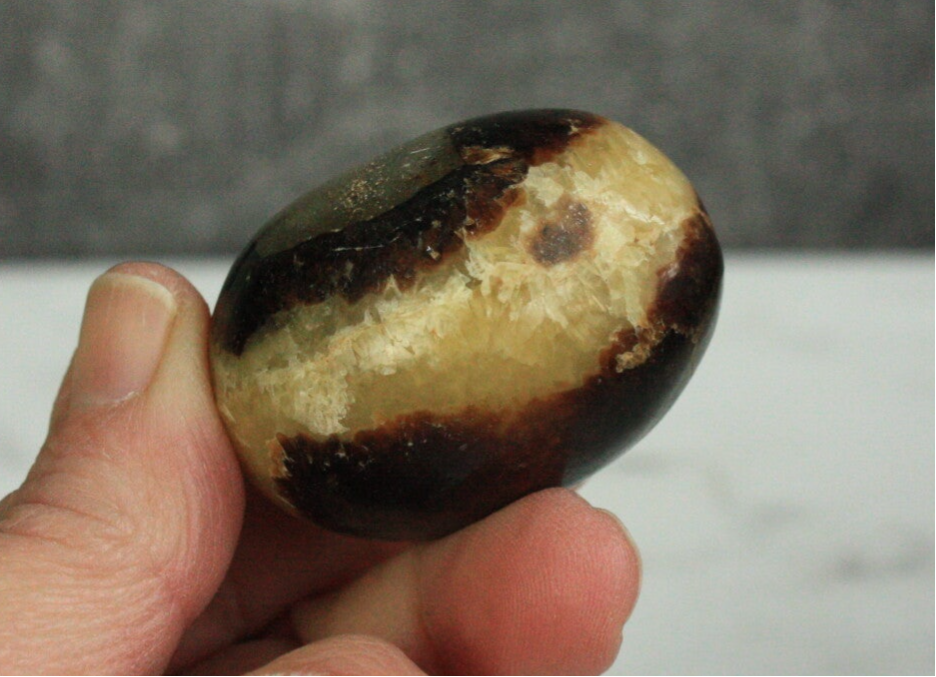 Werking: Septarie heeft een aardende, zuiverende en kalmerende werking. De steen bevordert zelfgenezing, eigenwaarde en tolerantie. Septarie heeft een sterke connectie met de aarde en natuur.