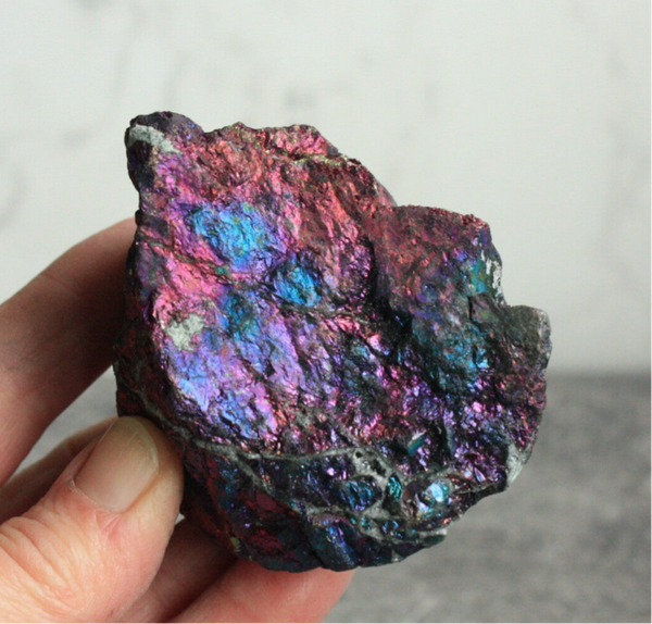 Werking: Chalcopyriet is een sterk inzichtgevende steen die helpt de waarheid bloot te leggen. De steen versterkt je intuïtie en bevordert waarneming en logisch denken. Chalcopyriet trekt voorspoed en geluk aan.