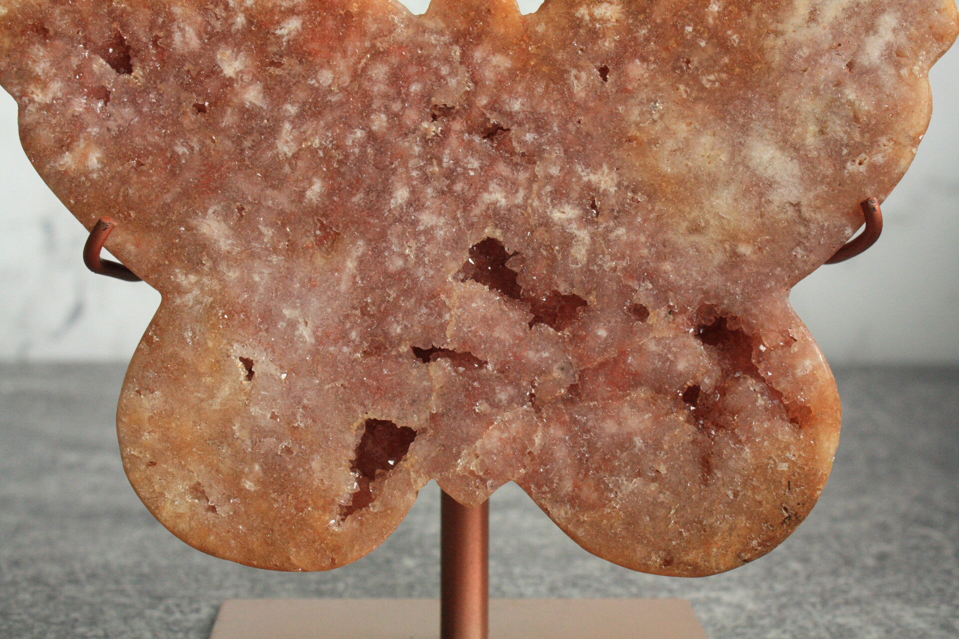 Roze amethist, chalcedoon vlinder op standaard