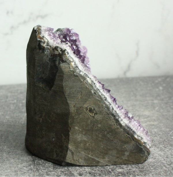 Amethist cutbase uit Brazilië (met calciet).