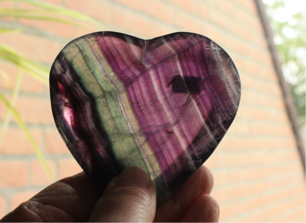 Regenboog fluoriet hart schaaltje uit China.