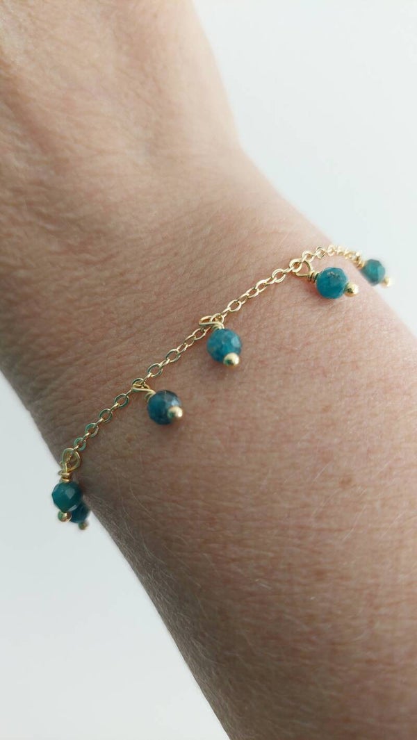 Blauw apatiet armbandje (met los hangende kraaltjes)