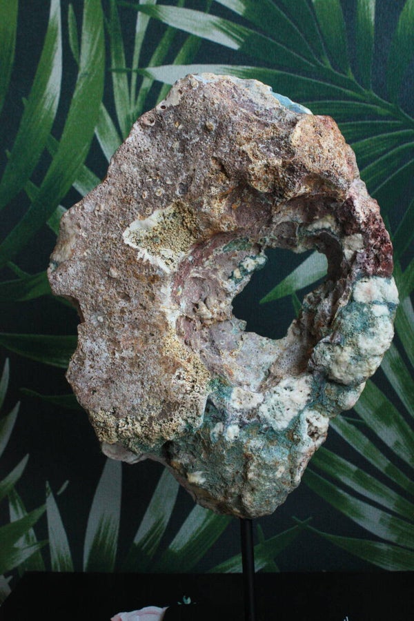 Roze amethist, chalcedoon op standaard uit Brazilië.