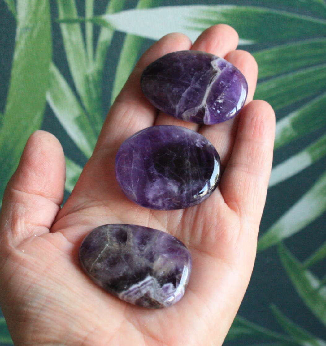 Werking: Amethist, waarschijnlijk de bekendste edelsteen, staat voor bescherming & ontspanning. De steen bevordert zelfinzicht en kan helpen bij slaapproblemen.