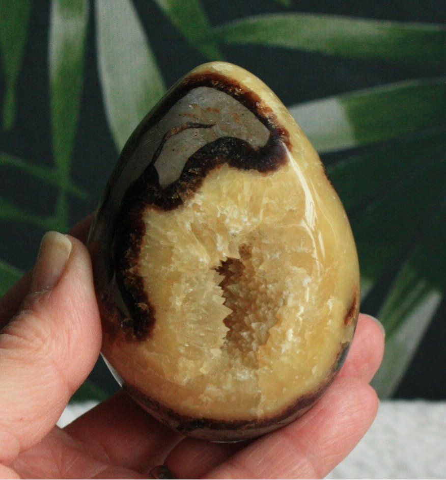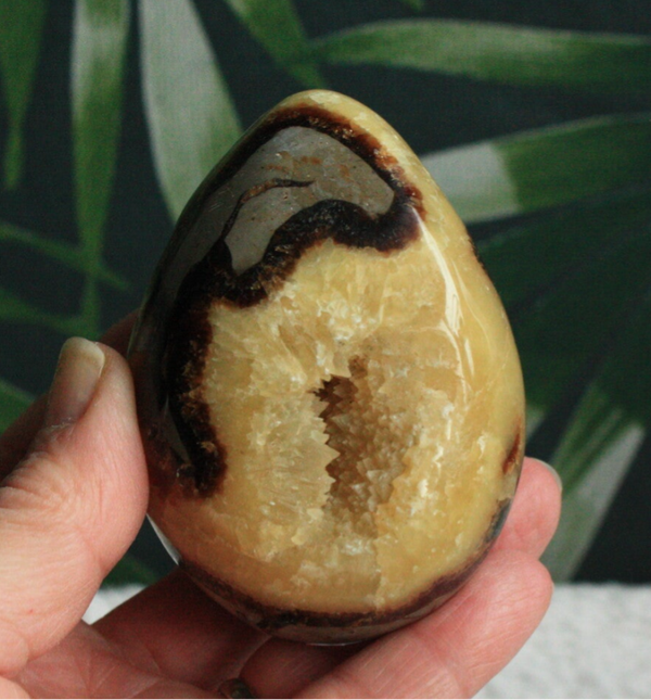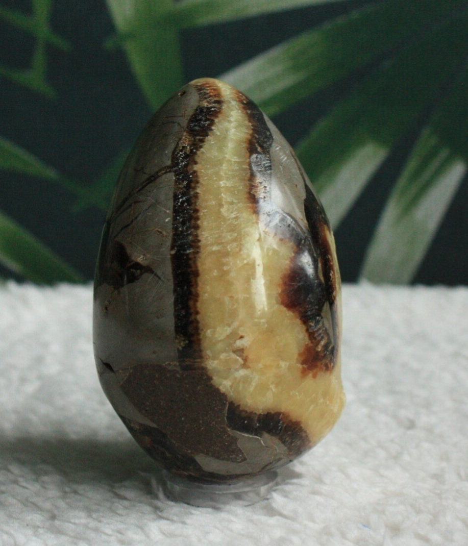 Werking: Septarie heeft een aardende, zuiverende en kalmerende werking. De steen bevordert zelfgenezing, eigenwaarde en tolerantie. Septarie heeft een sterke connectie met de aarde en natuur.