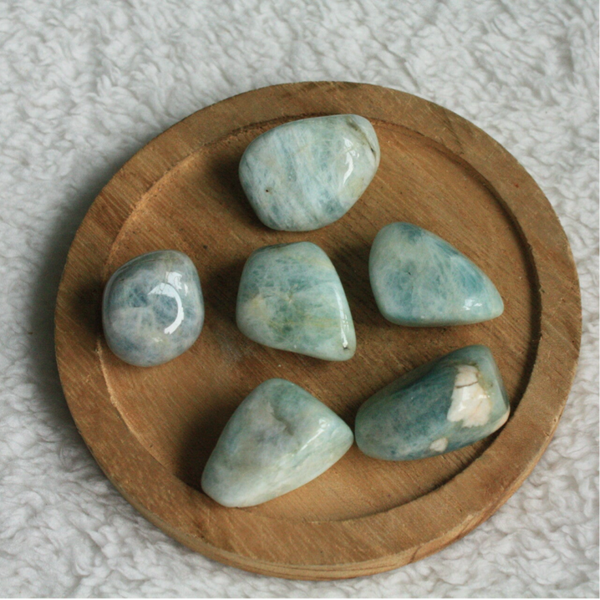 Aquamarijn trommelsteen van A-kwaliteit uit Brazilië.