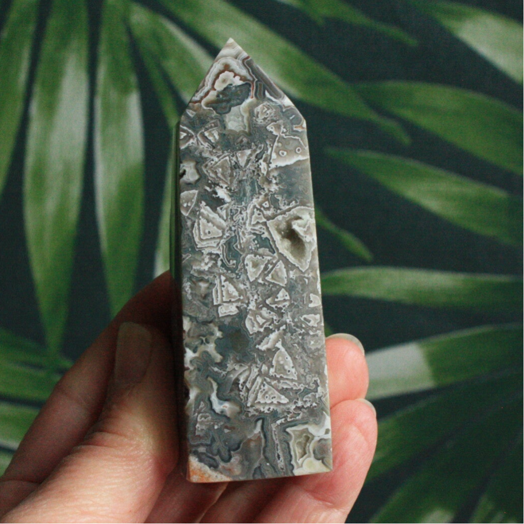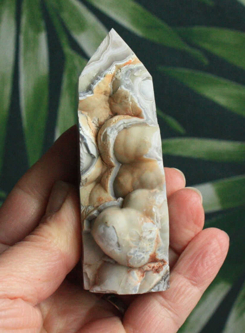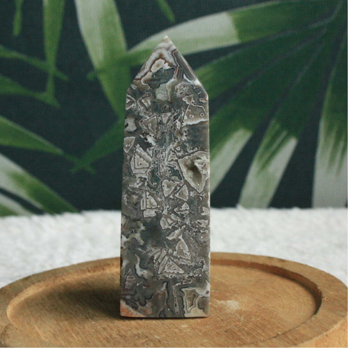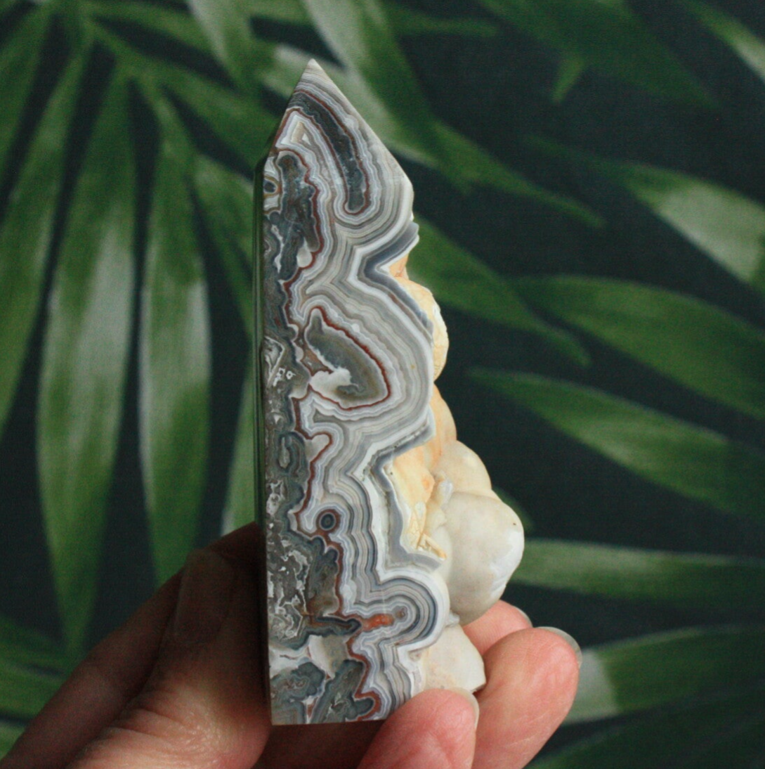 Crazy lace agaat toren met ruwe zijde uit Mexico.