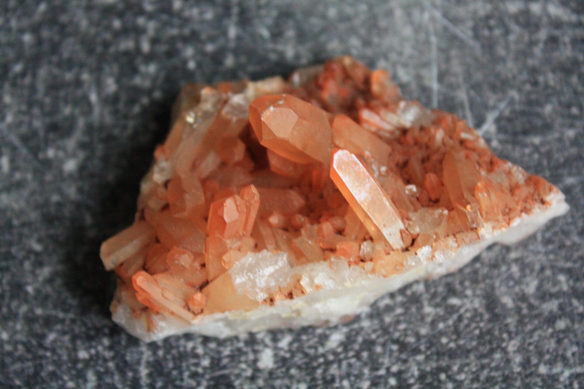 Werking: Tangerine kwarts is een oranje kwarts en heeft haar kleur te danken aan hematiet en water tijdens het groeiproces. Het is een energieke steen die zorgt voor optimisme, opwekking en moed. De steen stimuleert creativiteit, zelfexpressie en harmonie.