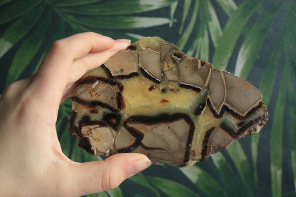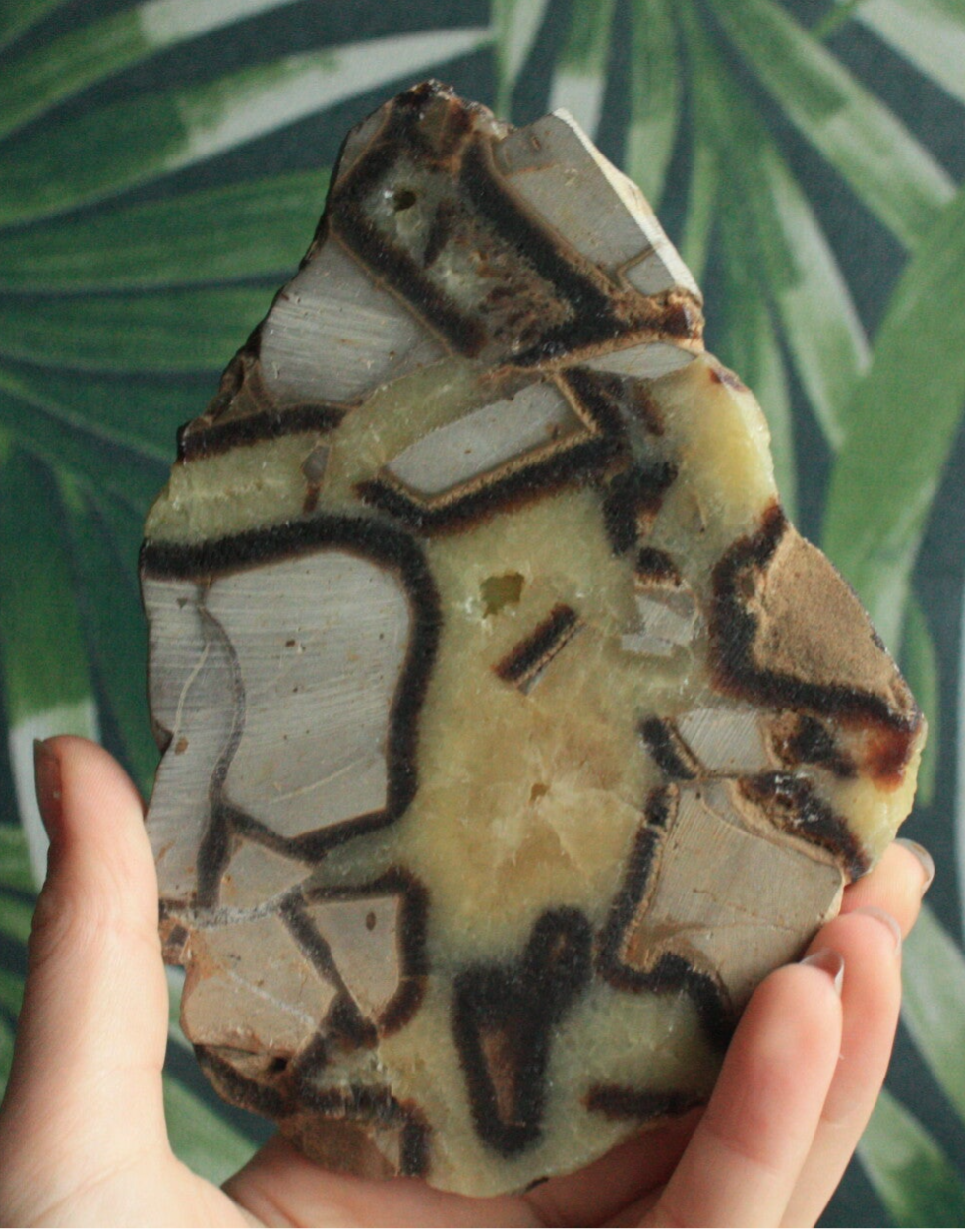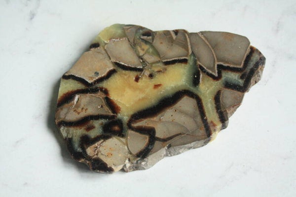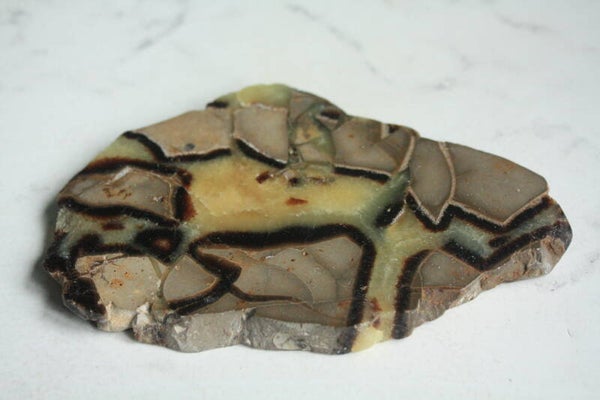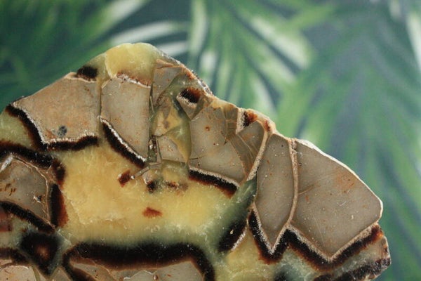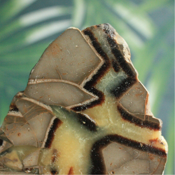Gepolijste septarie schijf uit Madagascar.