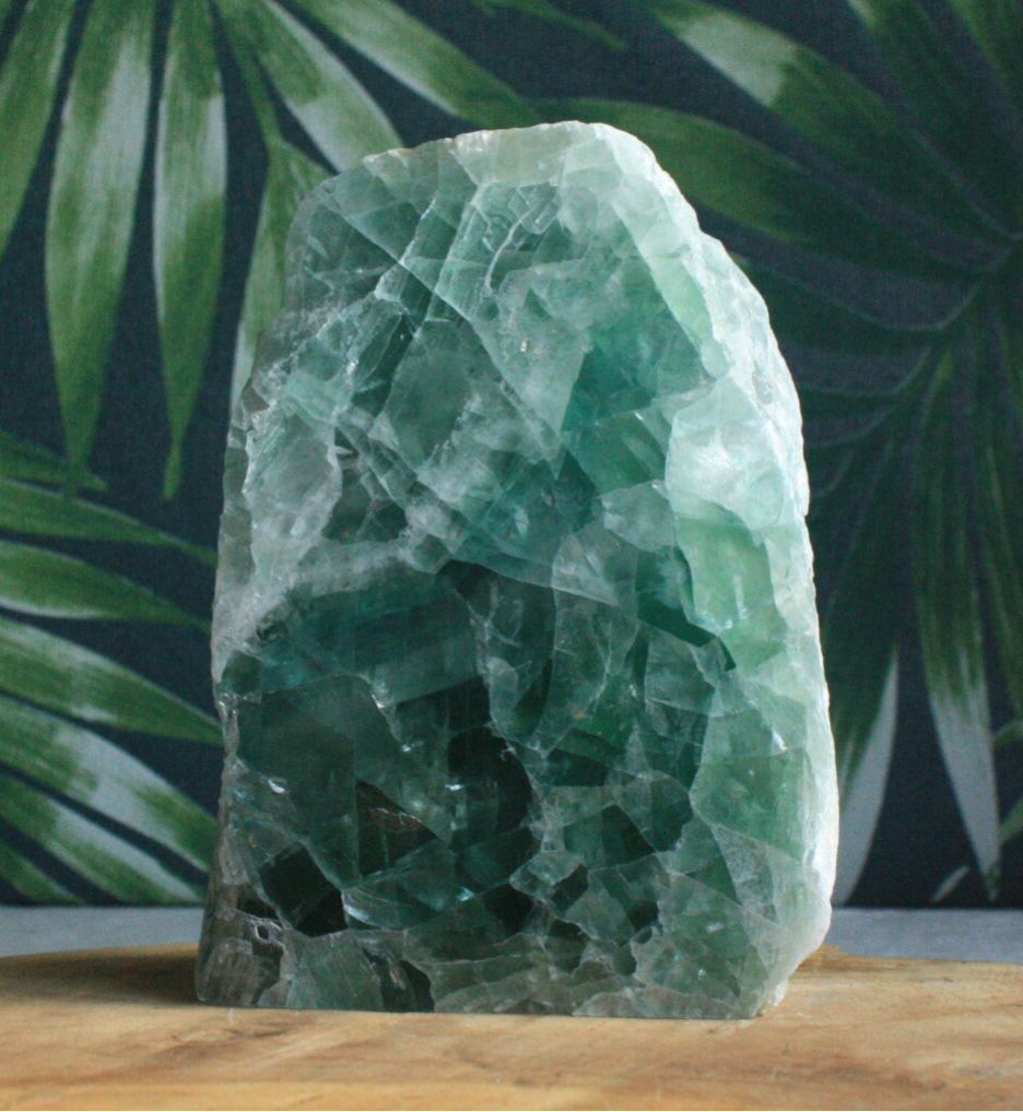 Groene fluoriet cutbase uit Brazilië.