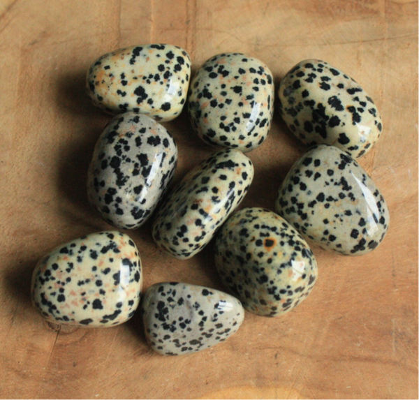 Dalmatiër jaspis trommelsteen uit Mexico.