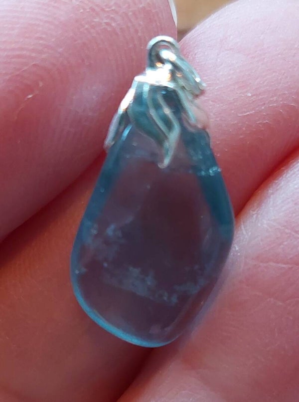 Blauwe fluoriet ketting uit China. Inclusief koord.