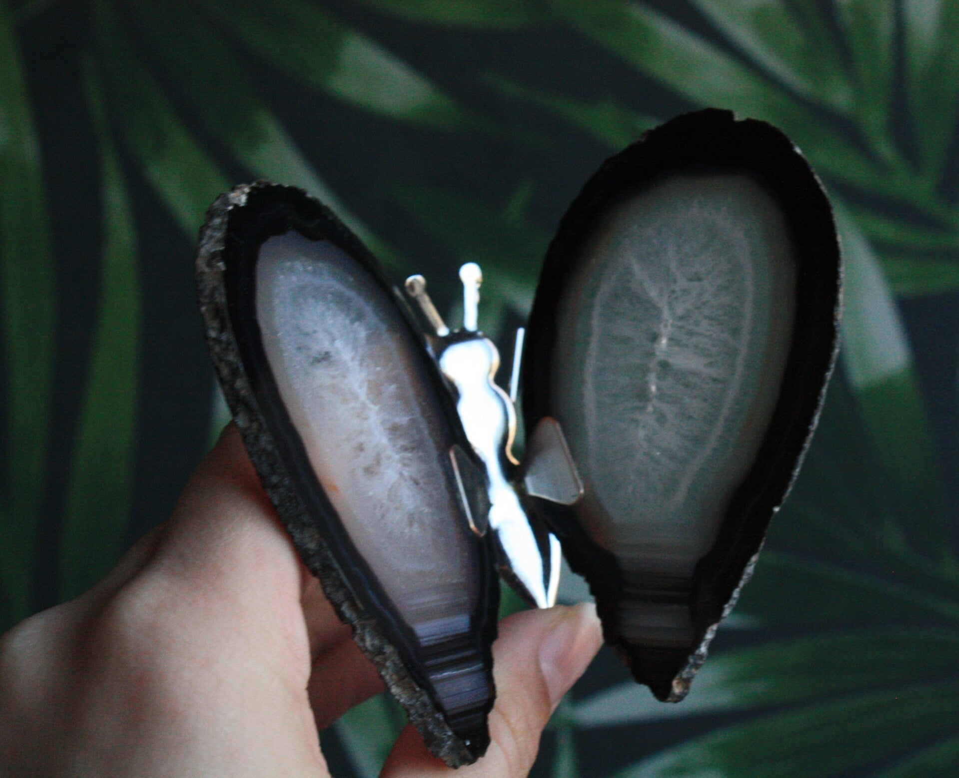Agaat vlinder uit Brazilië. Het lijfje is zilverkleuring.