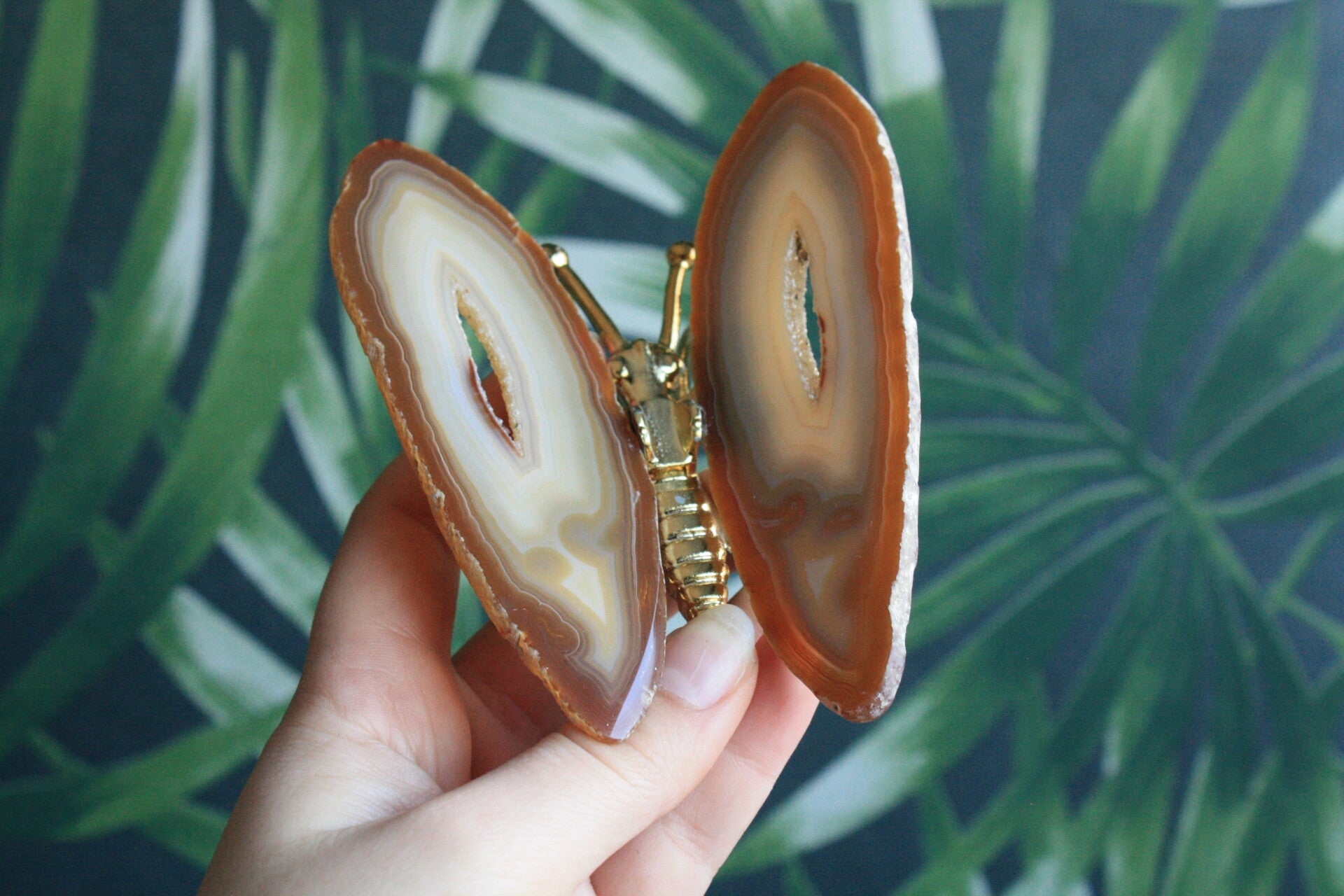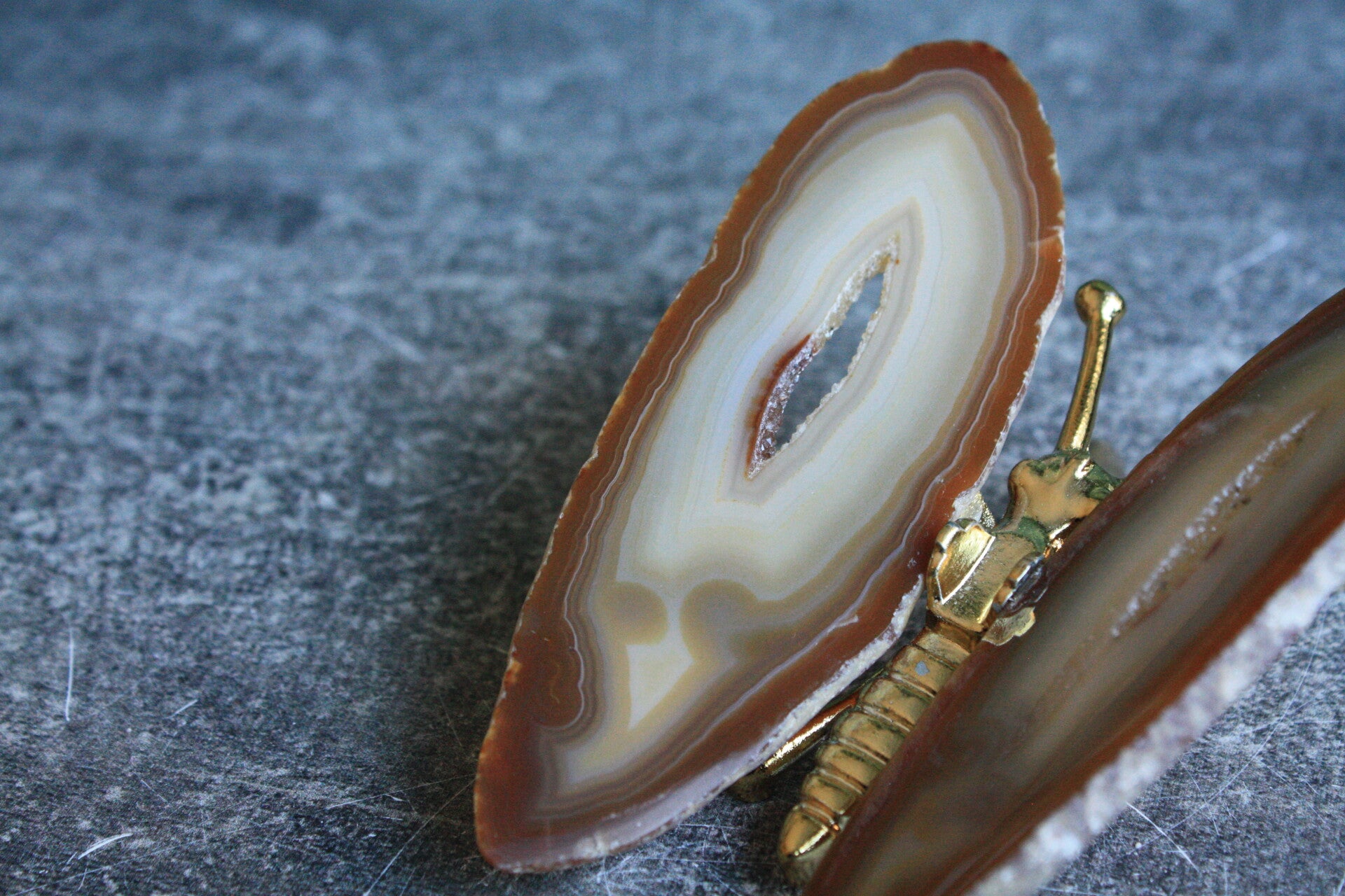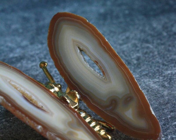 Agaat vlinder uit Brazilië. Het lijfje is goudkleuring.