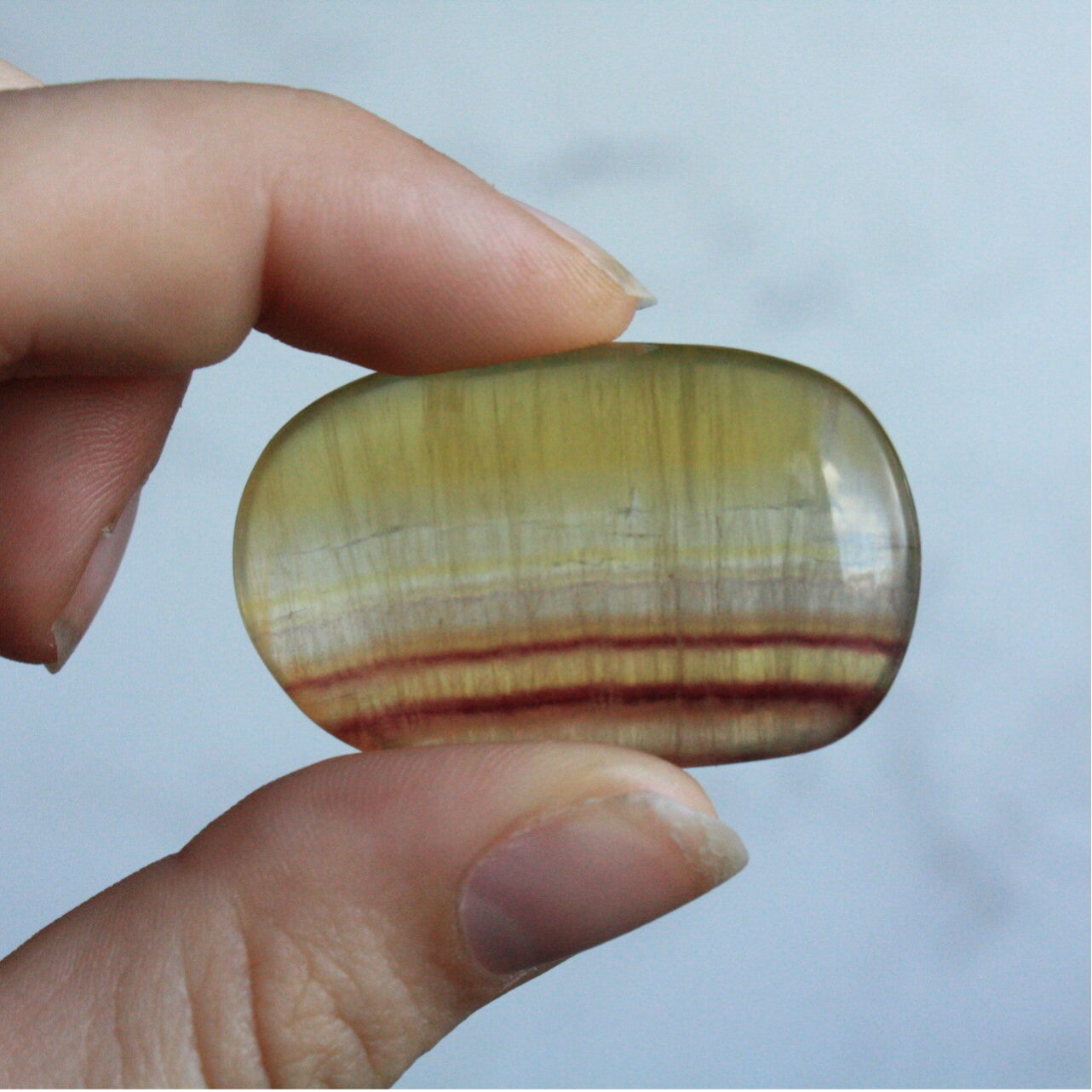Gele fluoriet handsteen uit China.