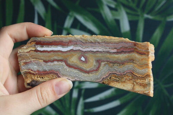 Agaat crazy lace schijf uit Indonesië.