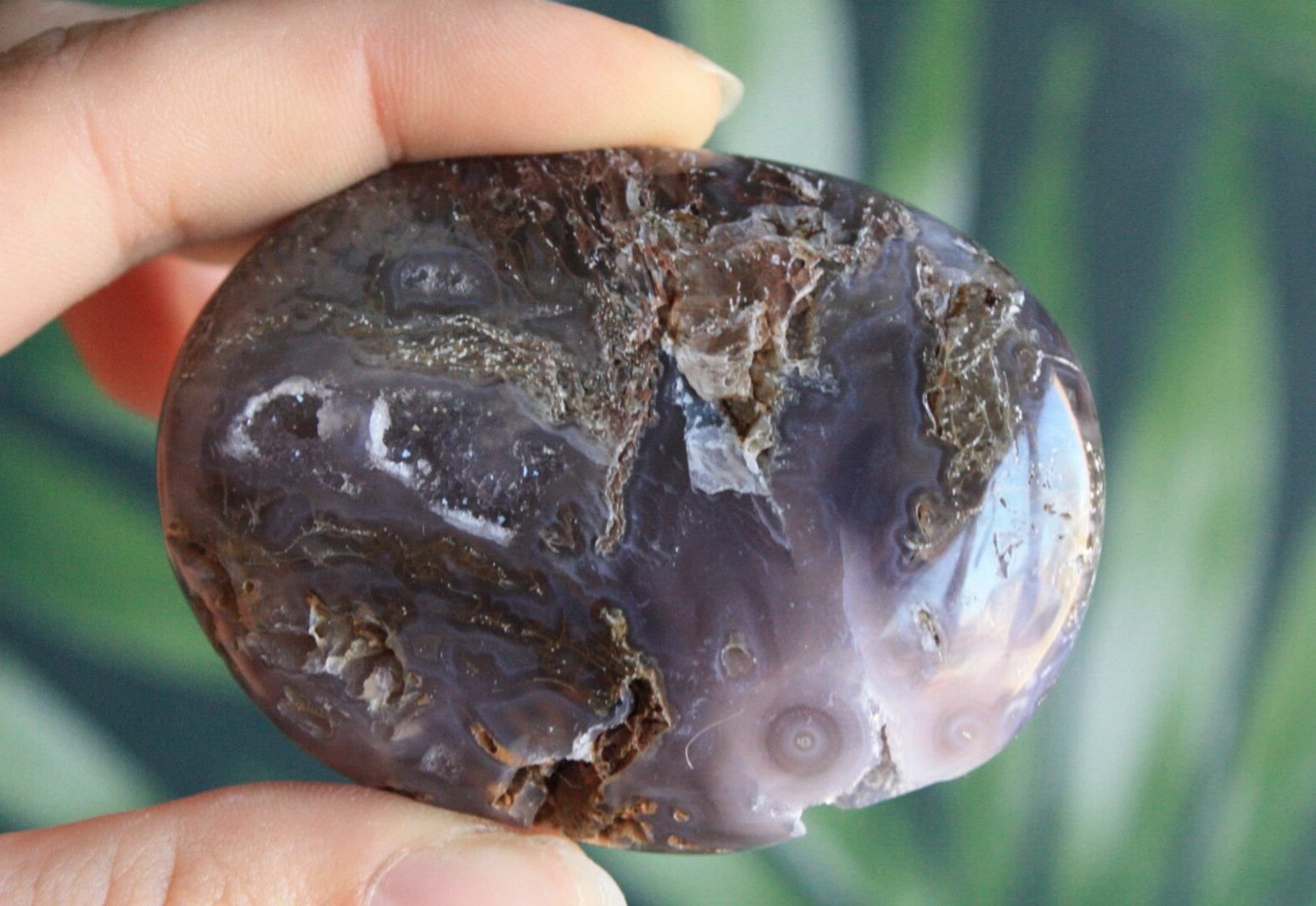 Druzy mos agaat palmsteen van A-kwaliteit uit India.