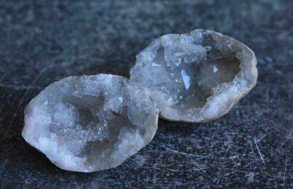 Bergkristal geode paartje (maat XS) uit Marokko.