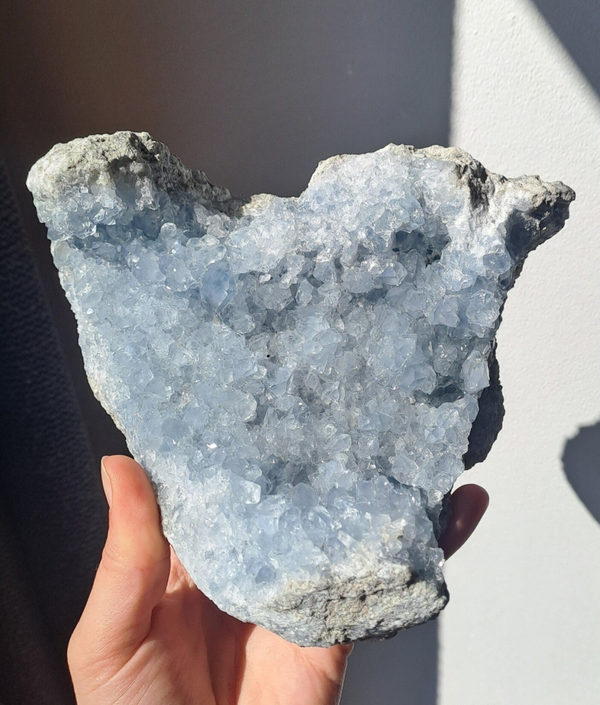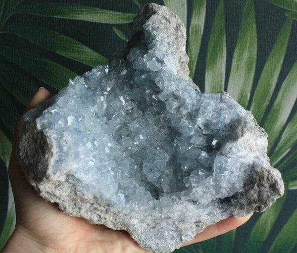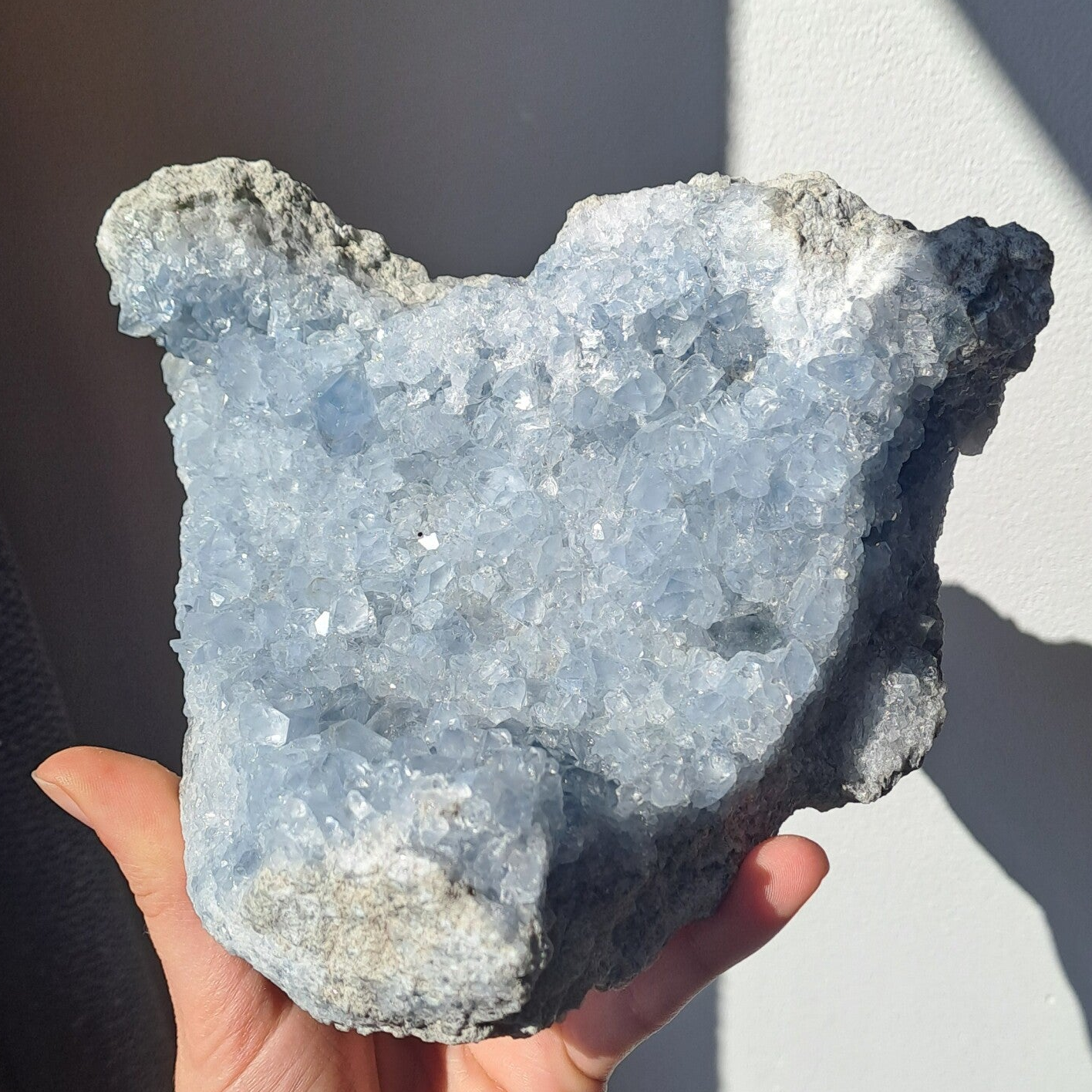 Groot celestien cluster van AA-kwaliteit uit Madagascar.