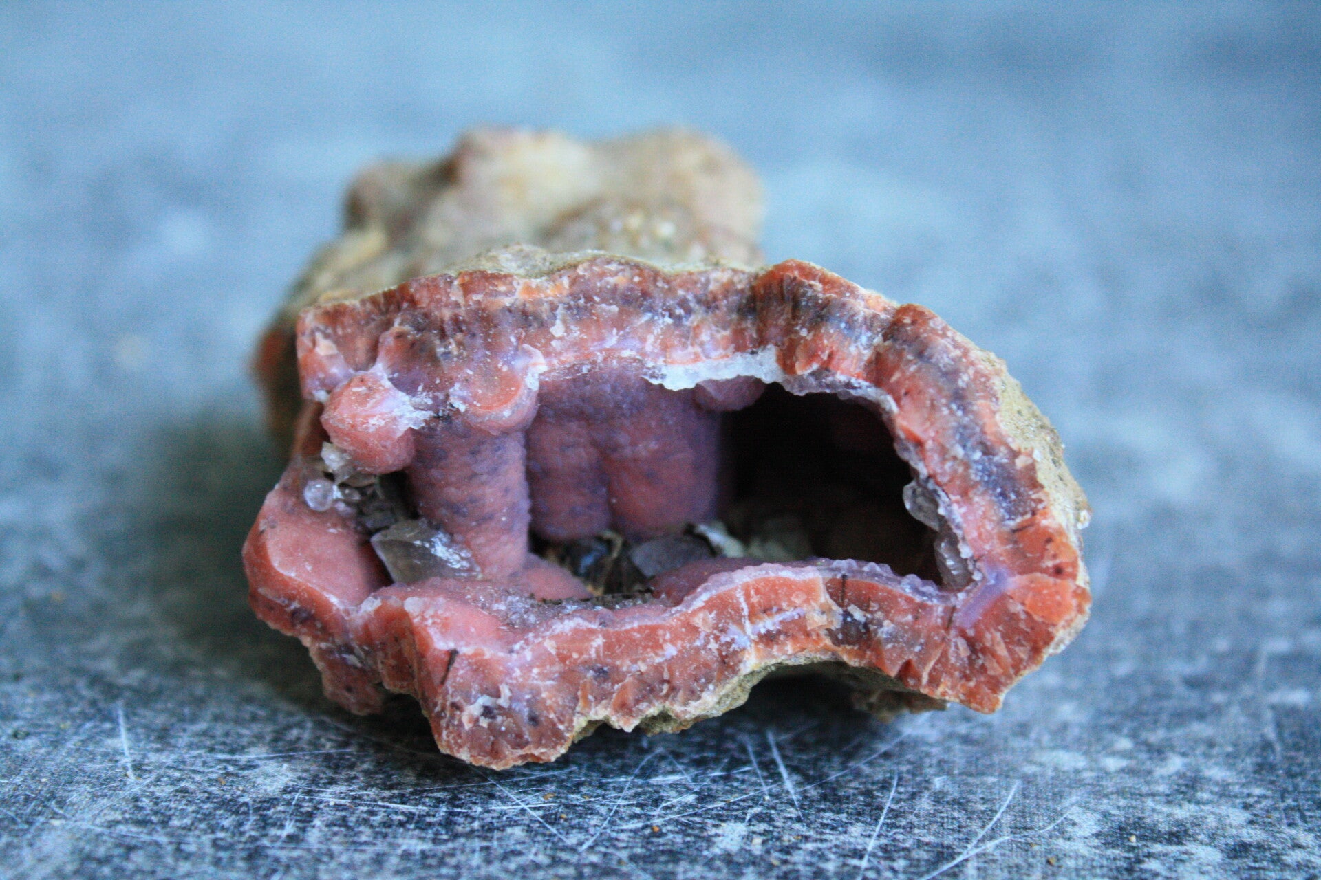 Roze chalcedoon geode uit Marokko.