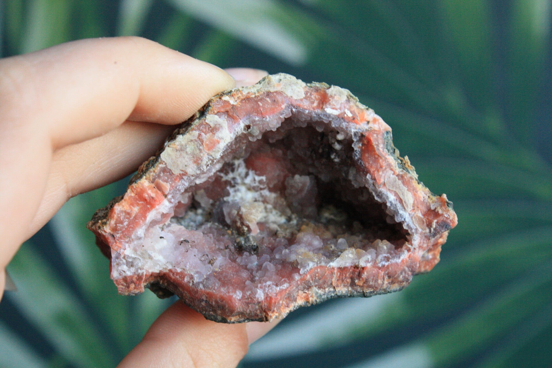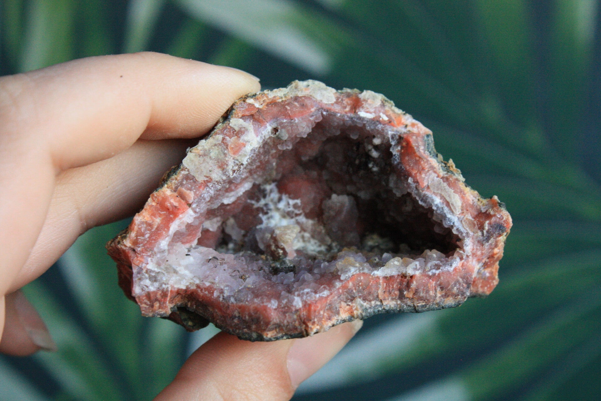 Roze chalcedoon geode uit Marokko.