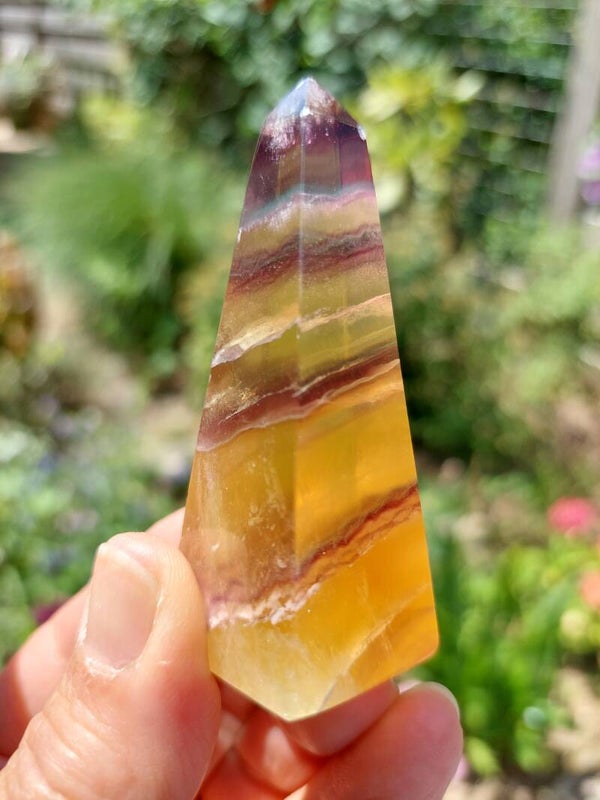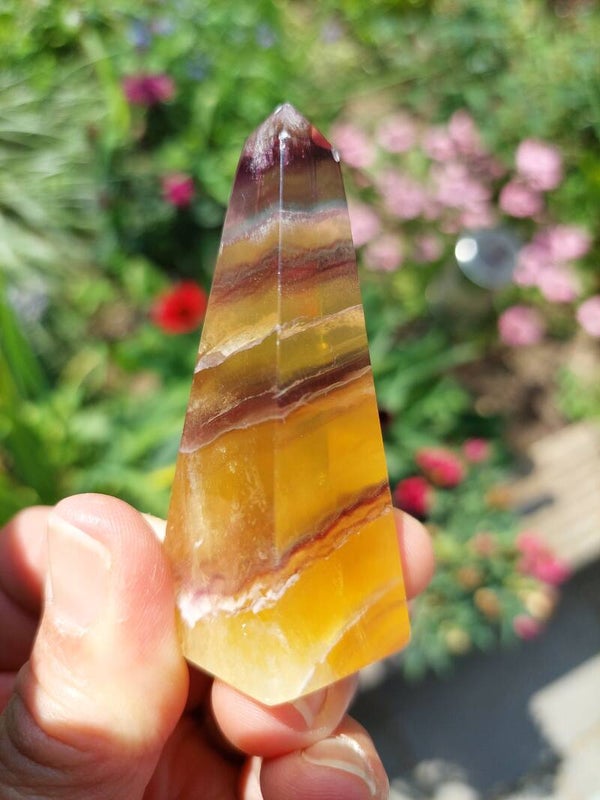Geel gestreepte fluoriet obelisk.