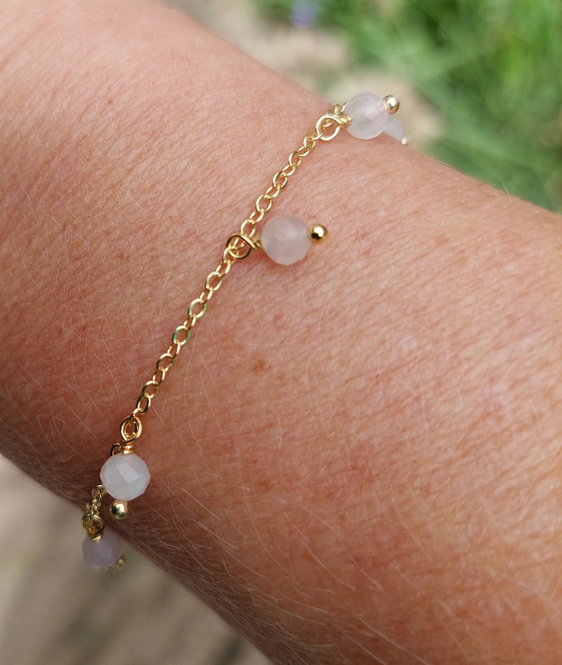 Let op: Draag de armband niet tijdens het douchen, slapen en sporten. Vermijd contact met water. De steen kan verkleuren bij blootstelling aan (fel) zonlicht. De kleur in werkelijkheid kan licht afwijken van de kleur op het beeldscherm.