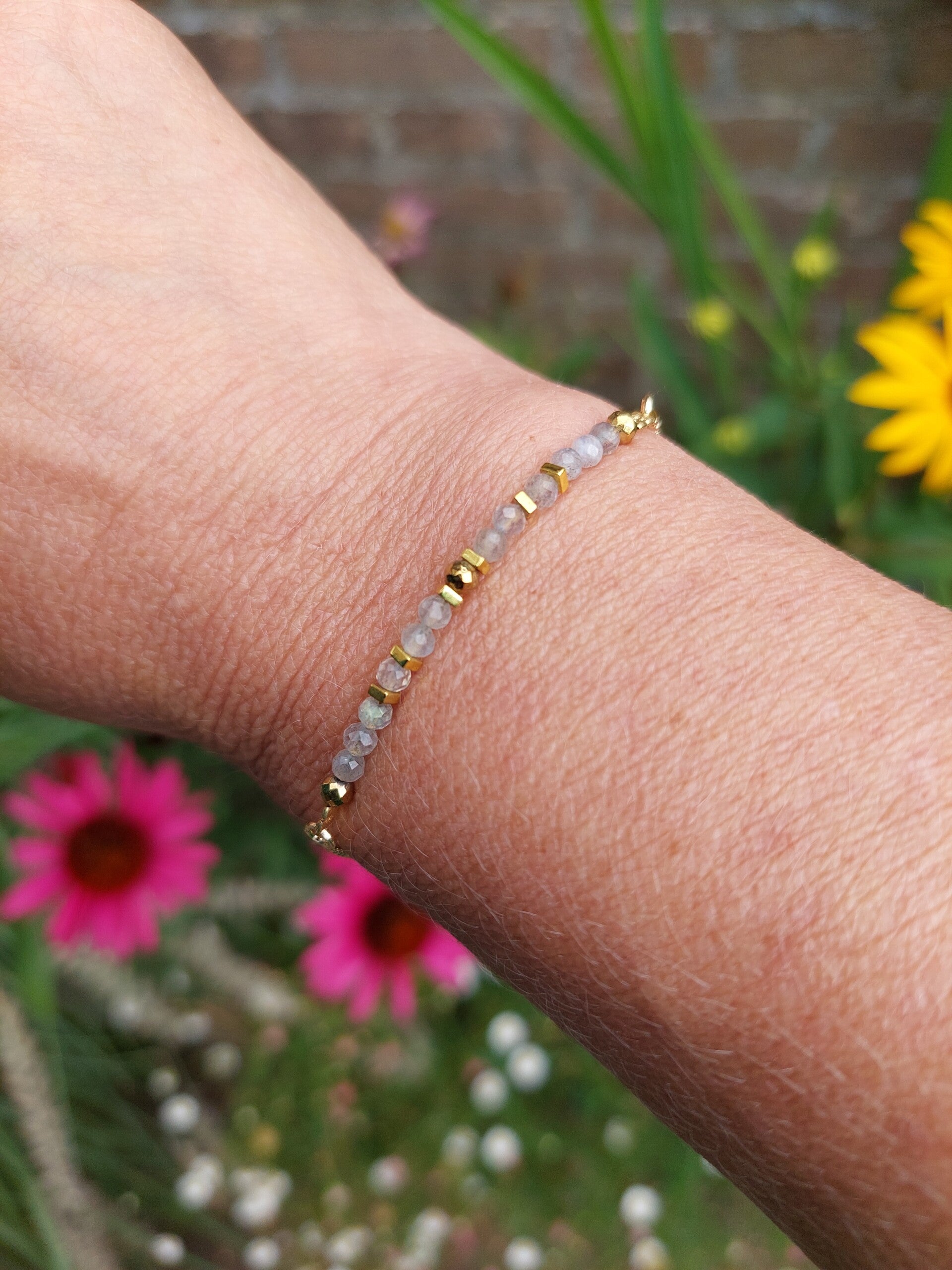 Het armbandje is gemaakt van messing, een legering van koper en zink. dit is verguld met 18 karaat goud.
