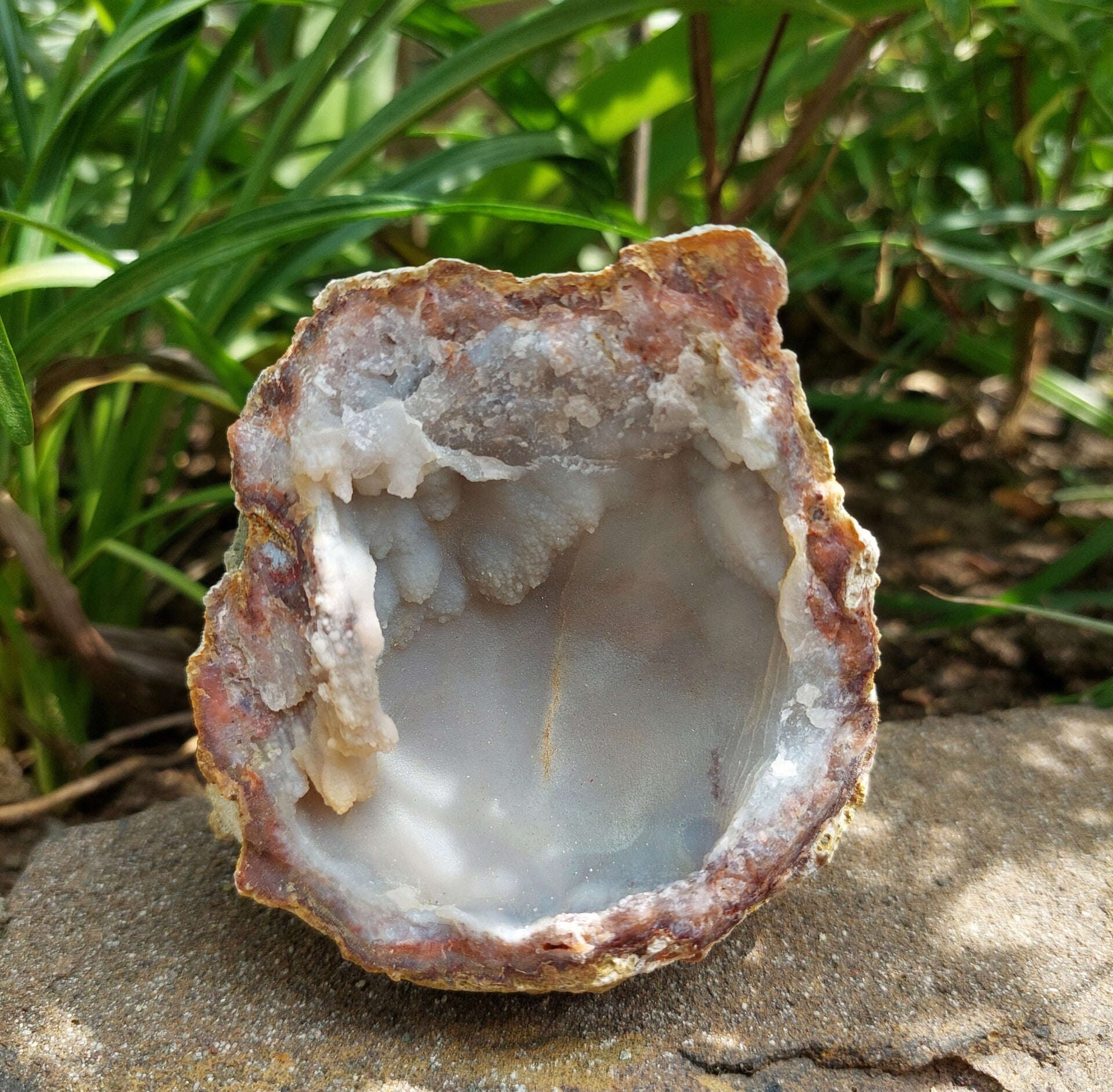 Roze chalcedoon geode uit Marokko.