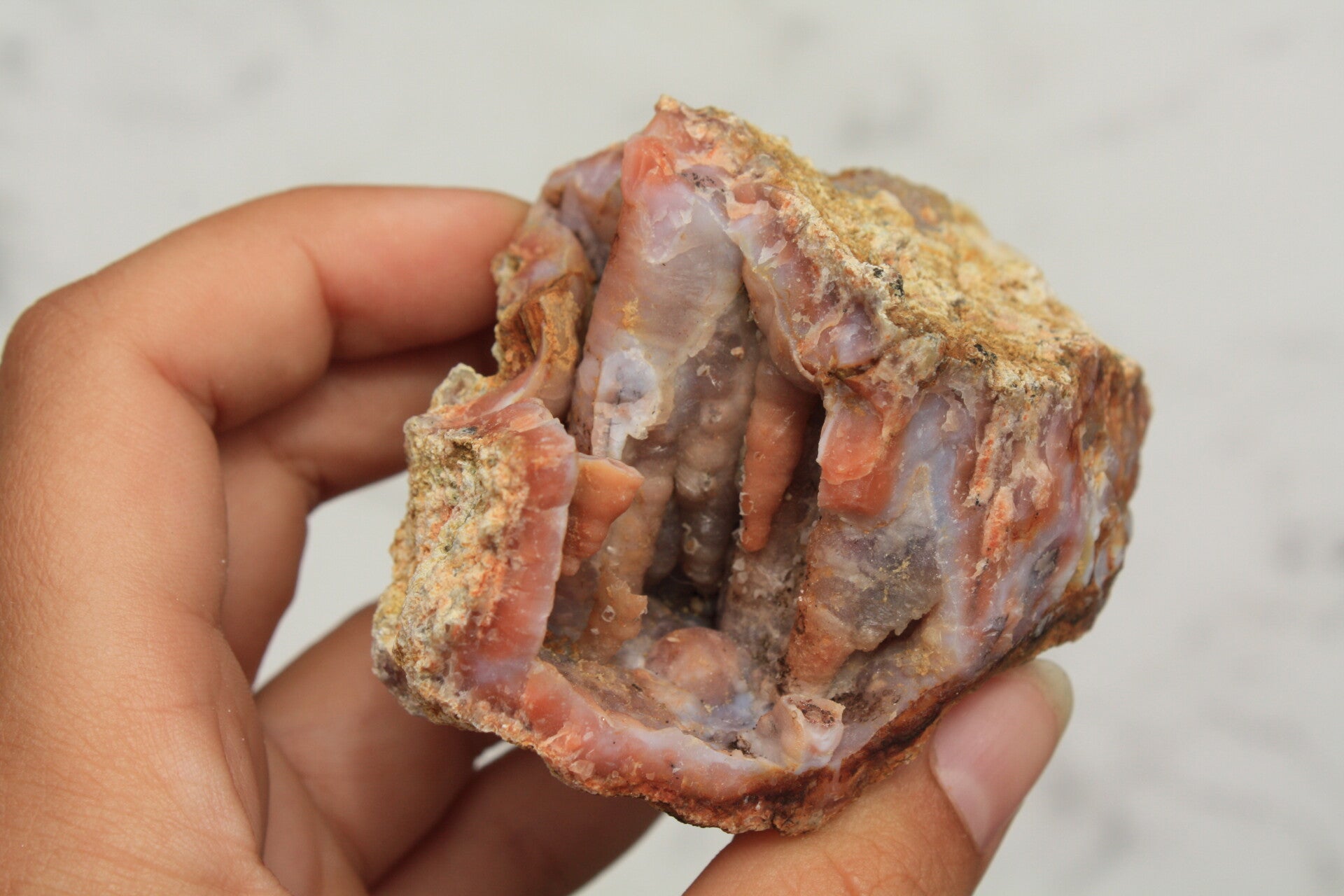 Roze chalcedoon geode uit Marokko.