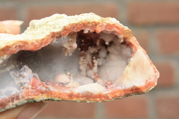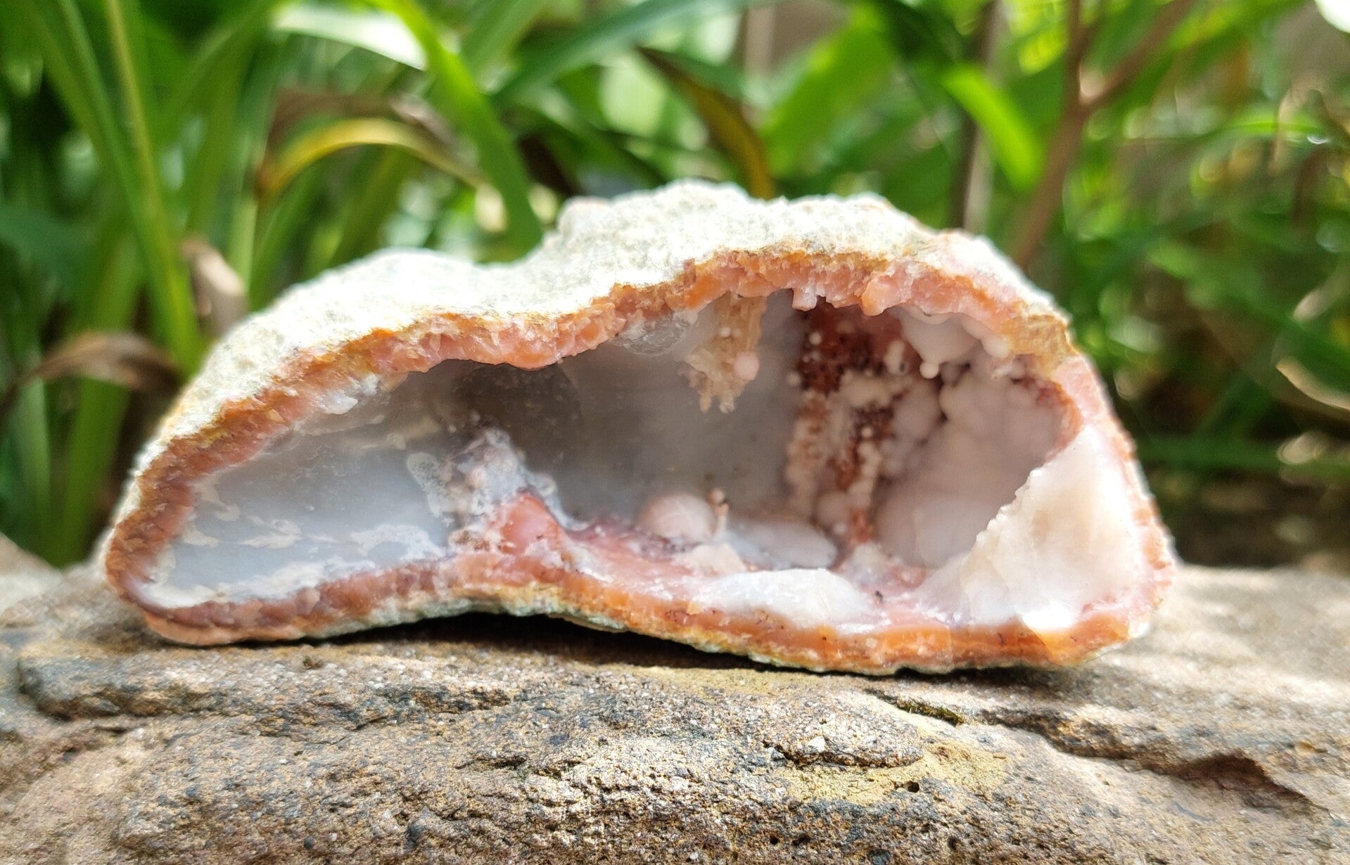 Roze chalcedoon geode uit Marokko.