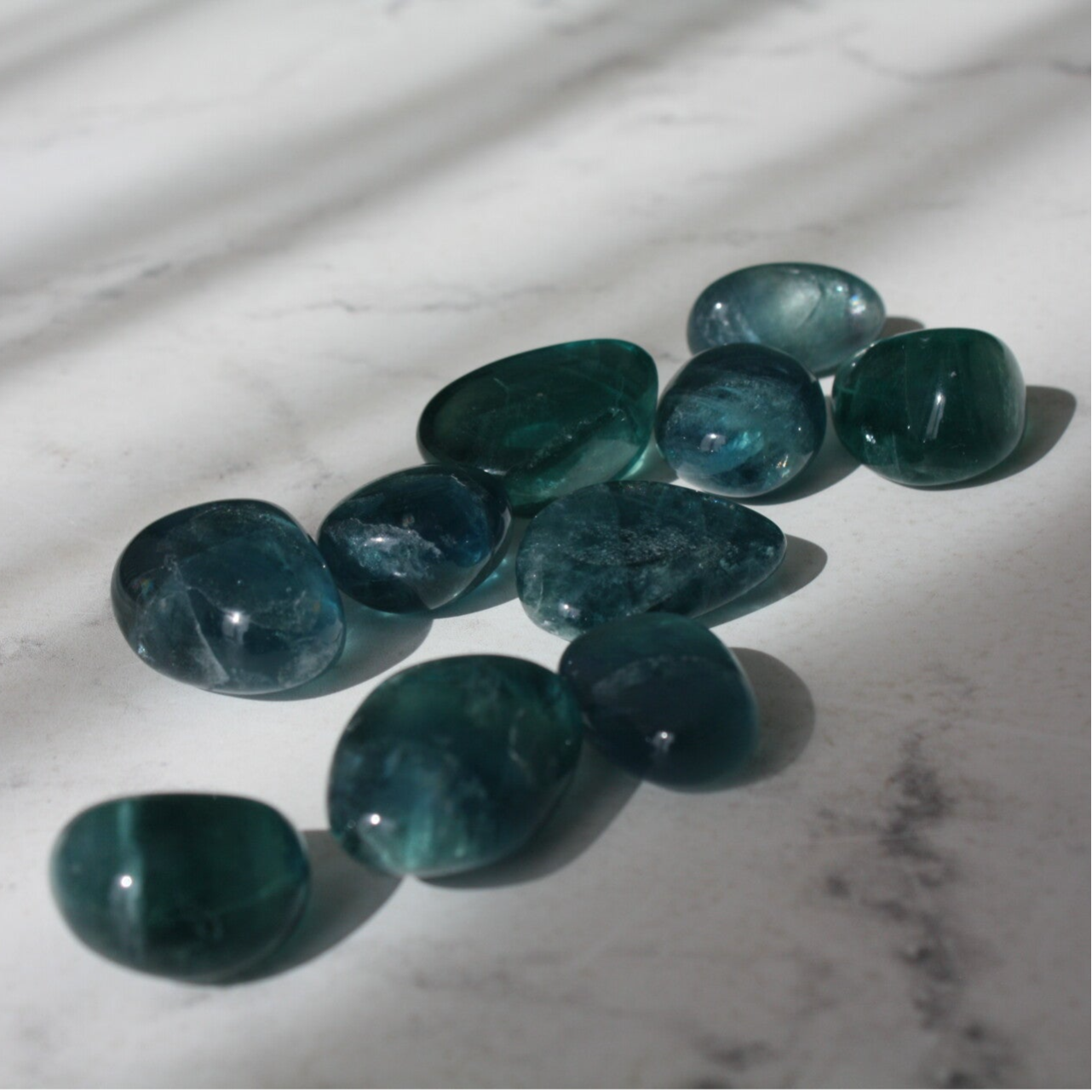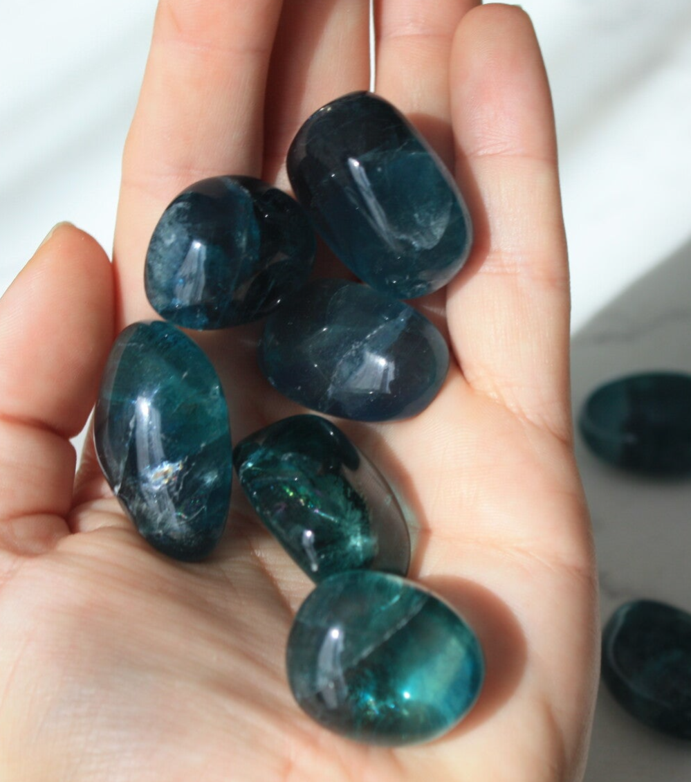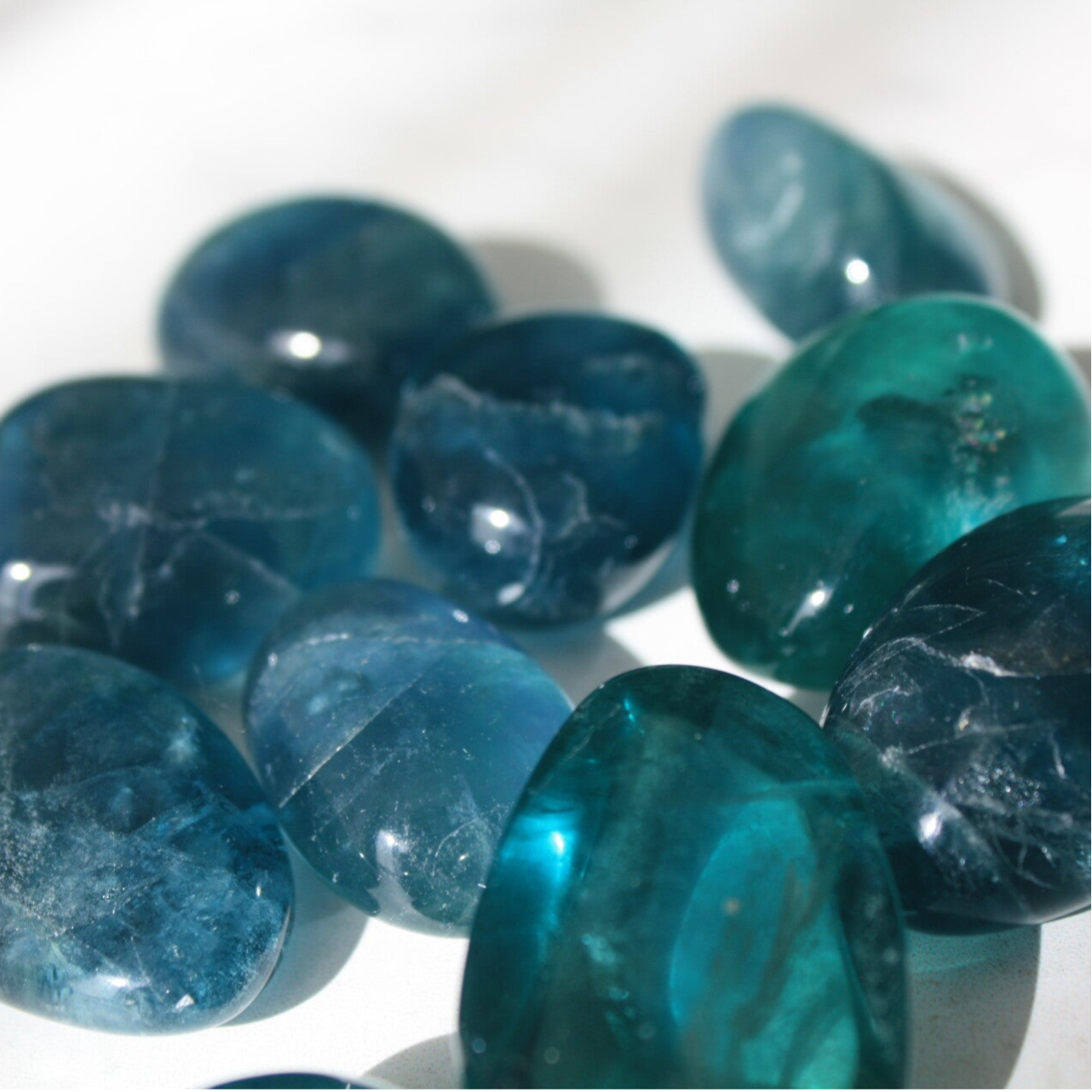 Blauwe fluoriet trommelsteen van A-kwaliteit uit China.