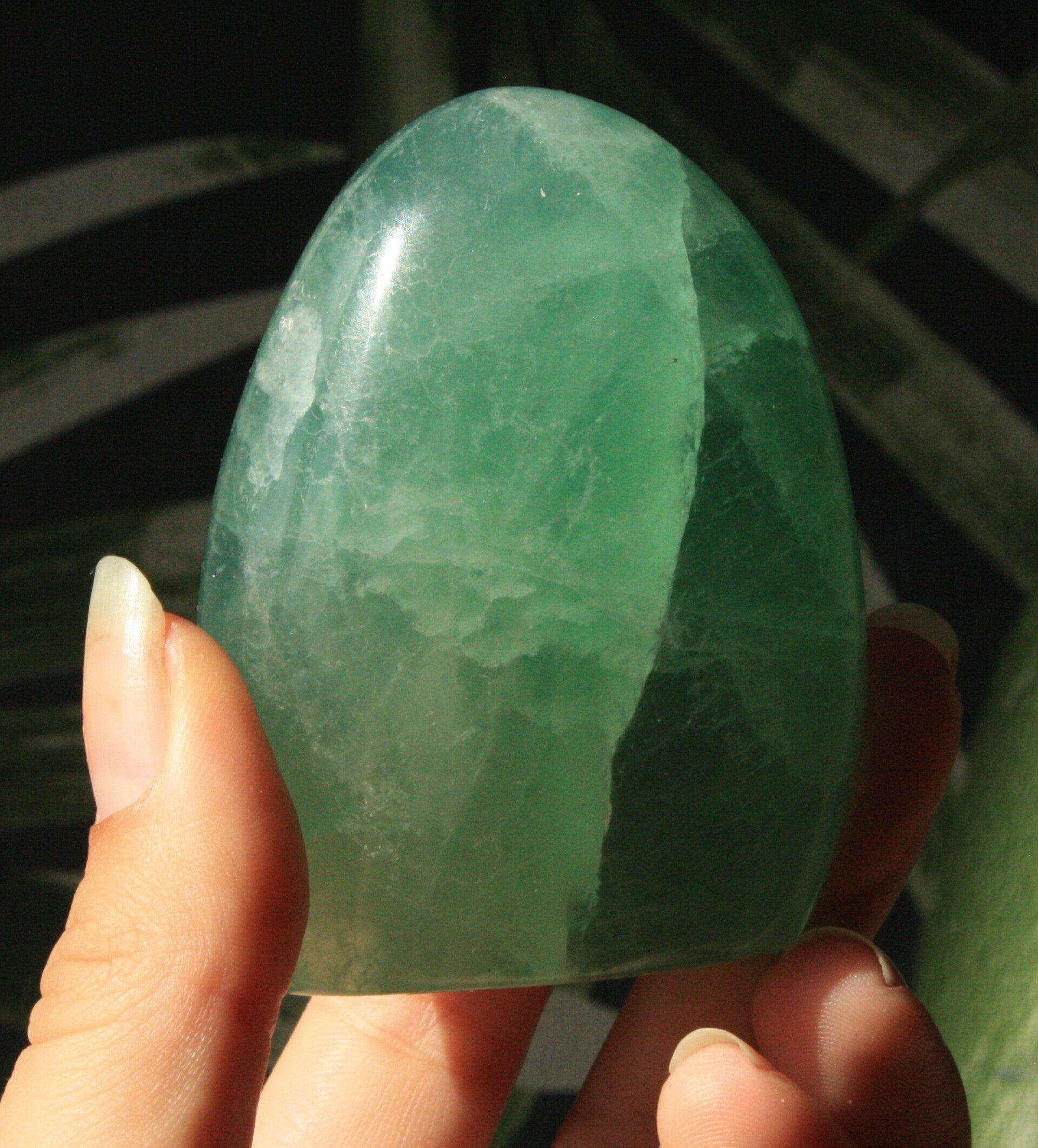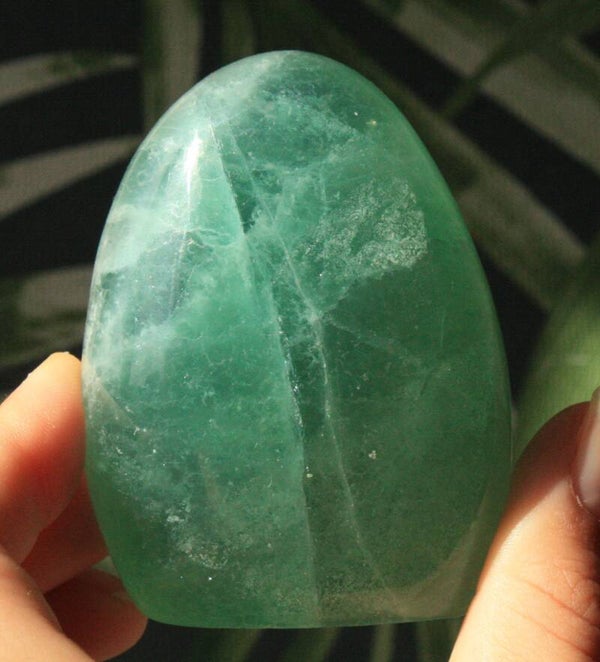 Groene fluoriet freeform uit Madagascar.