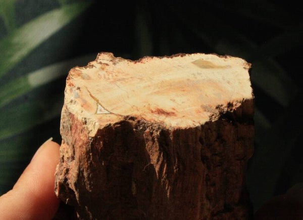 Versteend hout stam uit Madagascar. Deze kan niet zelfstandig op de ruwe onderkant staan, maar kan wel op het gepolijste vlakje staan of neergelegd worden.