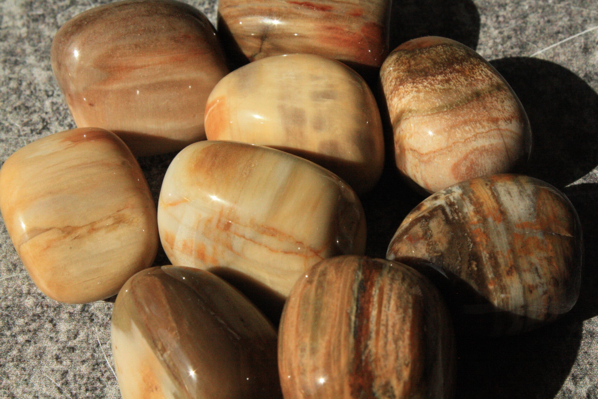 Versteend hout trommelsteen.