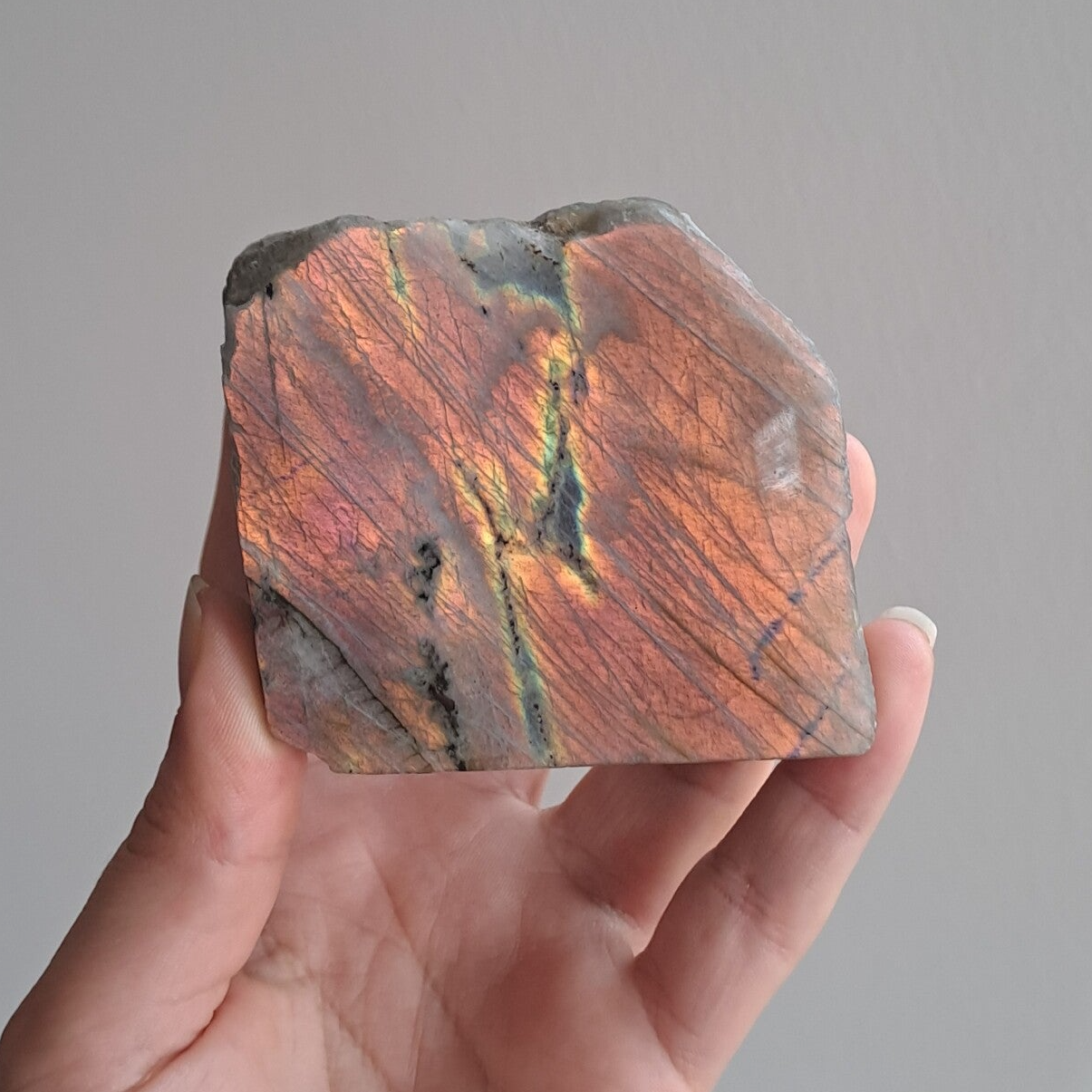 Werking: Labradoriet staat voor rust en intuïtie. Het is een sterk beschermende en spirituele steen. Labradoriet beschermt het eigen energieveld tegen negatieve invloeden uit de omgeving en mensen die energie bij je weghalen. Vandaar dat labradoriet een gewilde steen is bij HSP'ers. Daarnaast vermindert de steen angst en geeft het kracht en zelfvertrouwen.