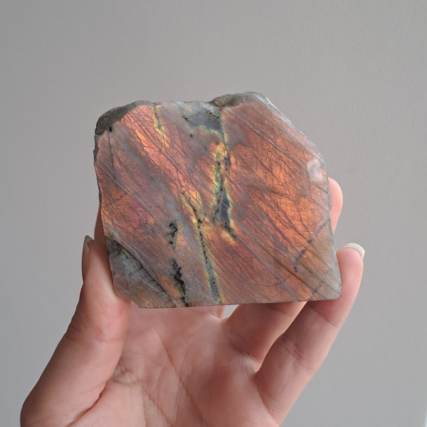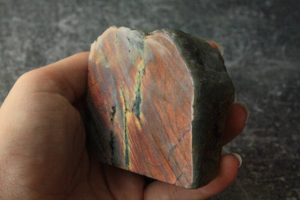 Half gepolijste labradoriet uit Madagascar.
