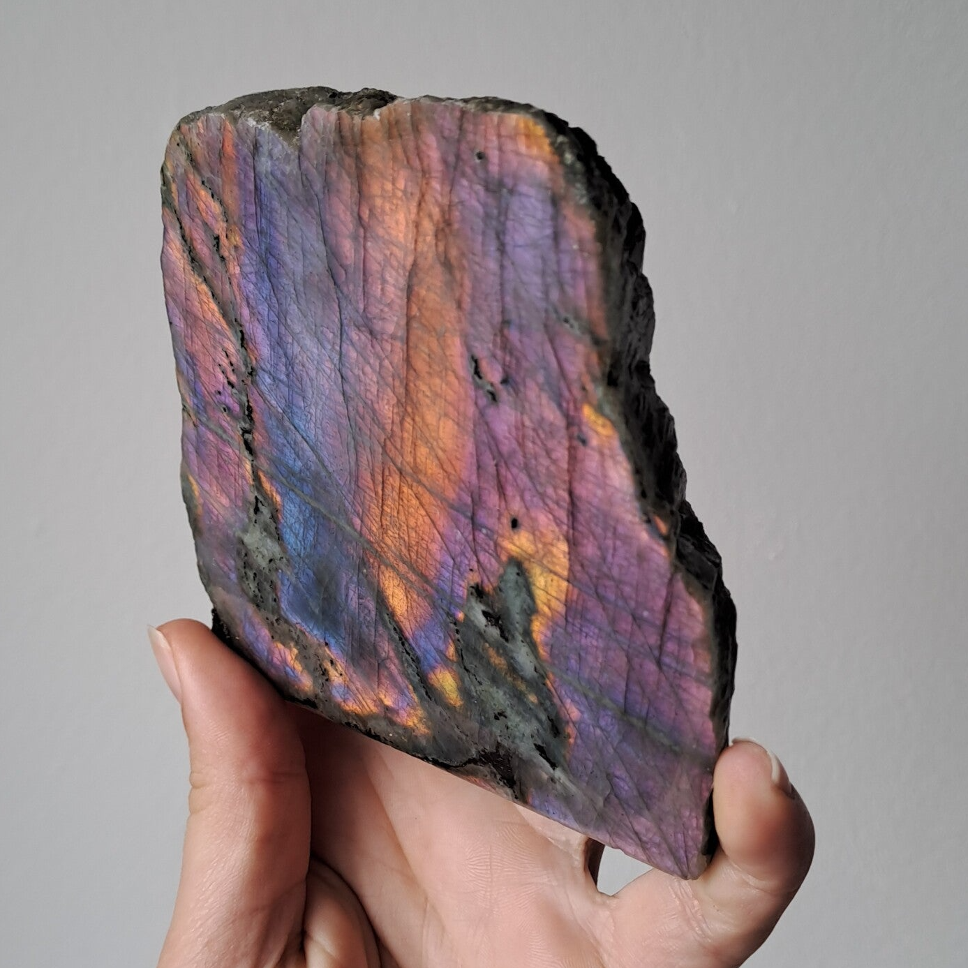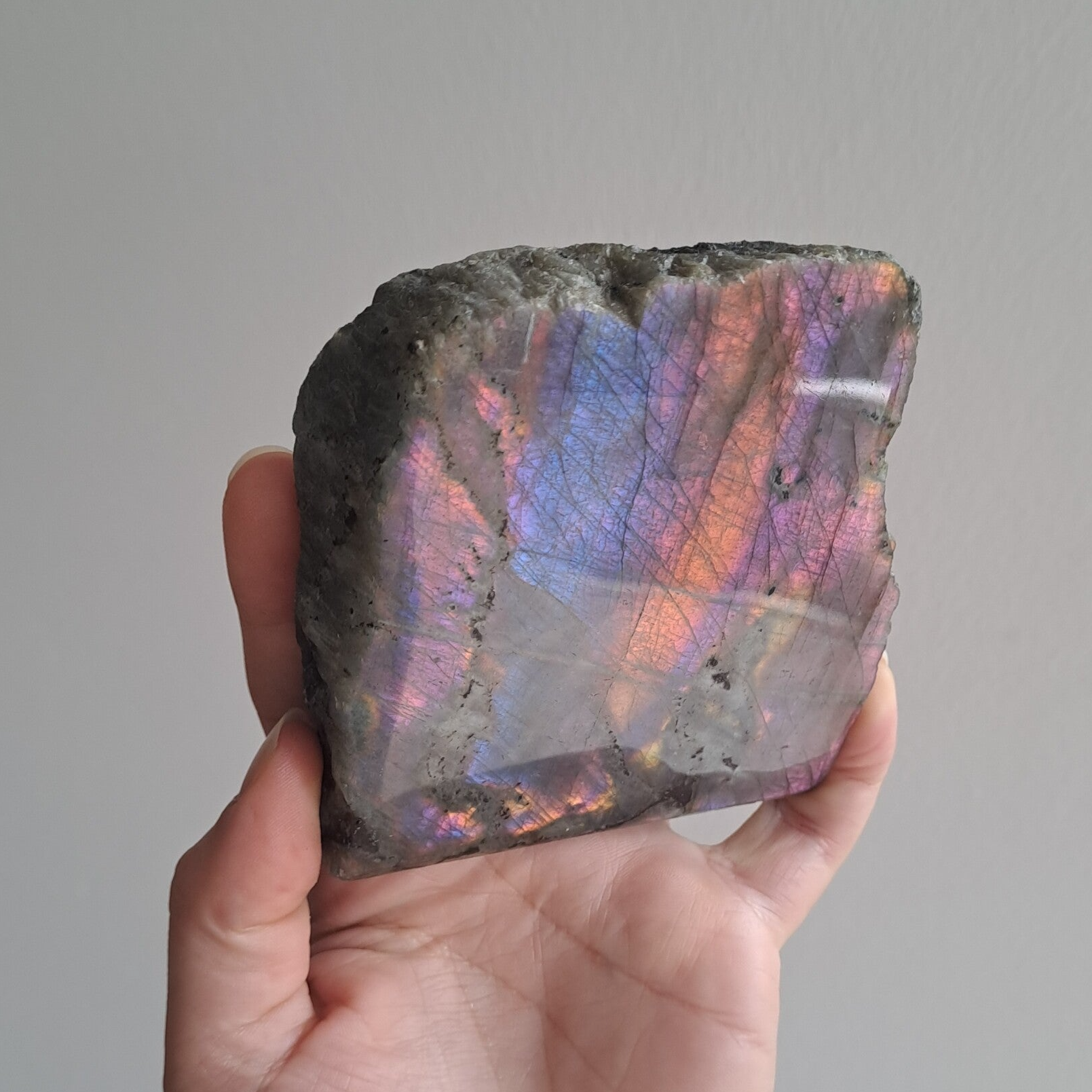 Werking: Labradoriet staat voor rust en intuïtie. Het is een sterk beschermende en spirituele steen. Labradoriet beschermt het eigen energieveld tegen negatieve invloeden uit de omgeving en mensen die energie bij je weghalen. Vandaar dat labradoriet een gewilde steen is bij HSP'ers. Daarnaast vermindert de steen angst en geeft het kracht en zelfvertrouwen.