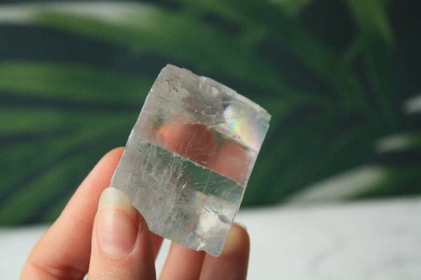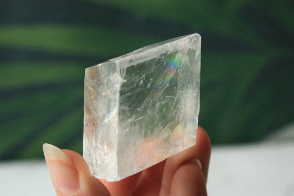 Optische calciet met veel regenboogjes.