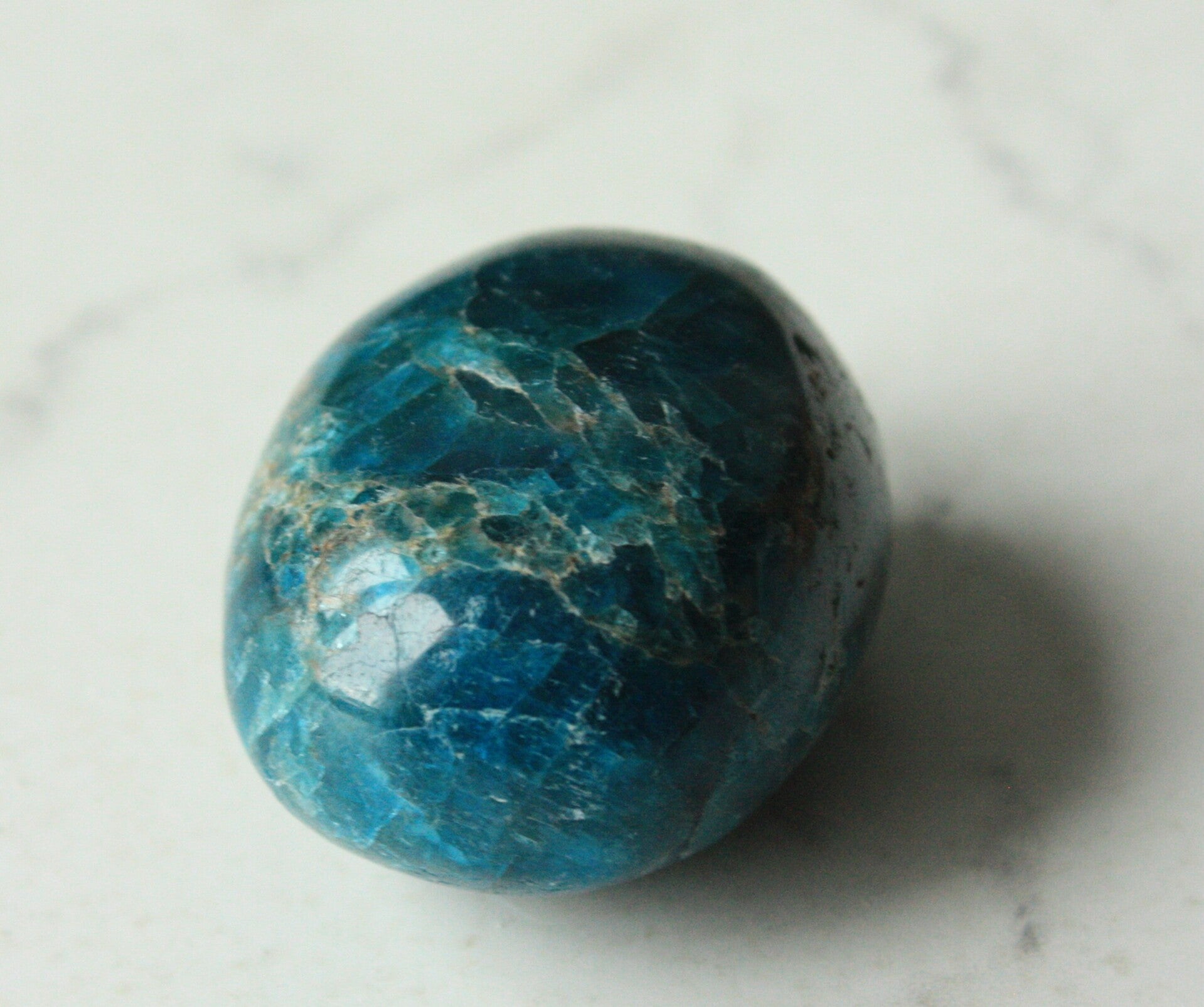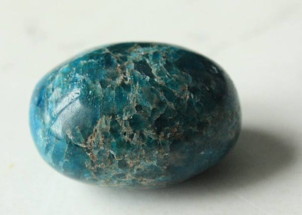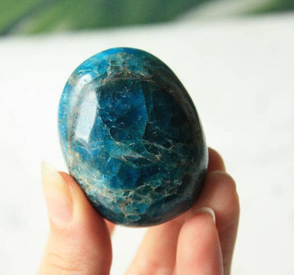 Blauwe apatiet handsteen uit Madagascar.