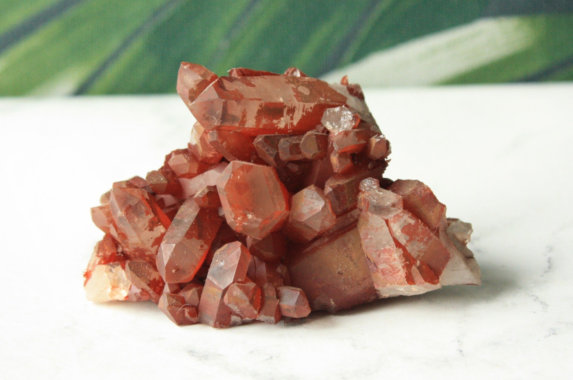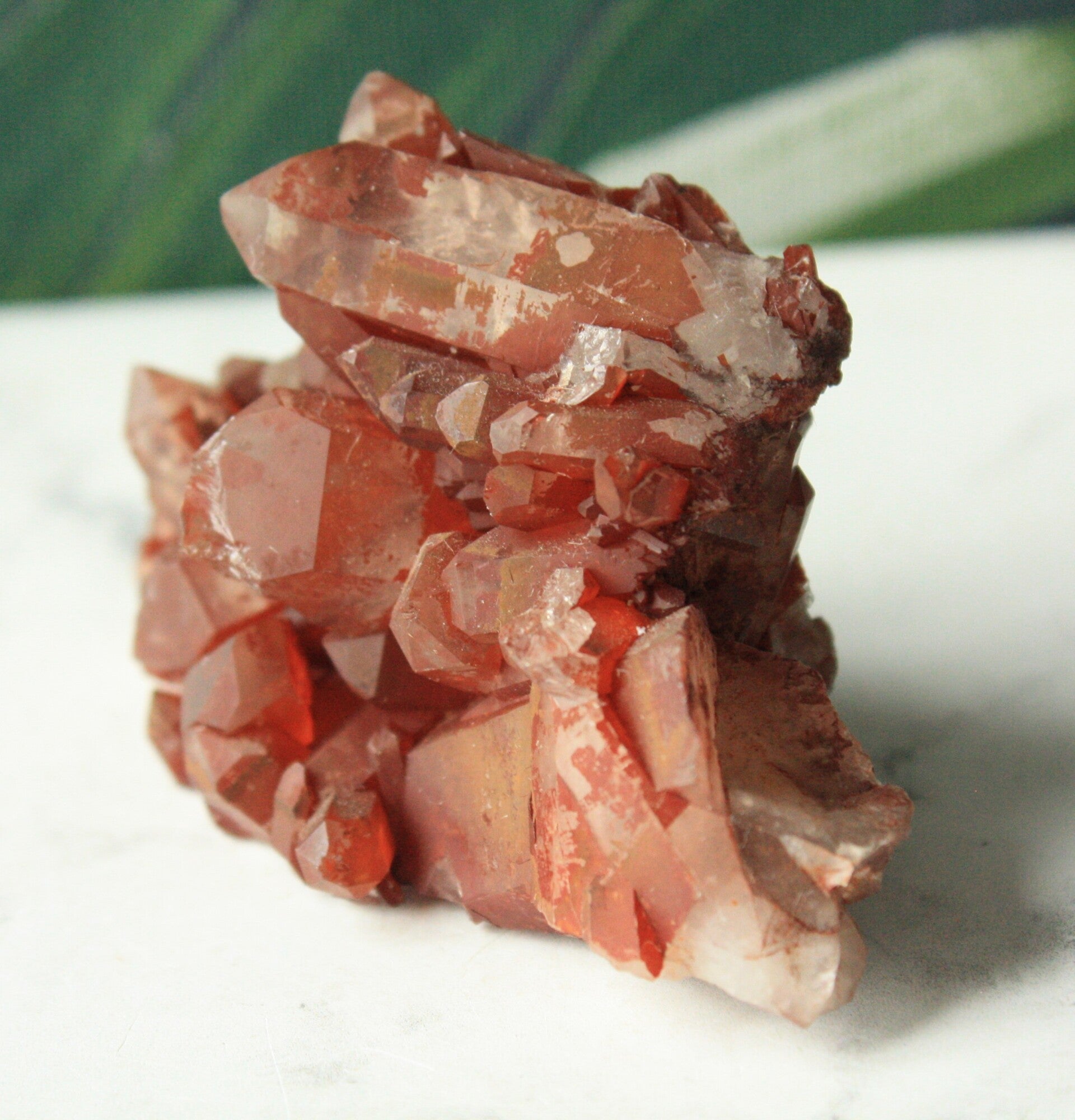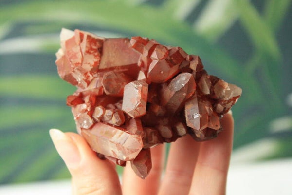 Red healer (hematietkwarts) cluster uit Madagaskar.