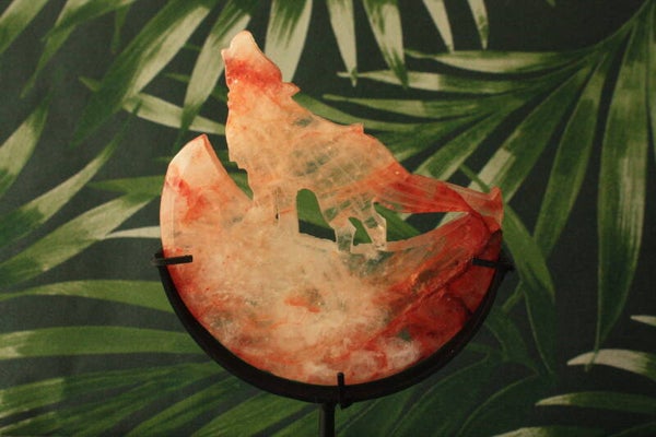 Red healer wolf op maan carving