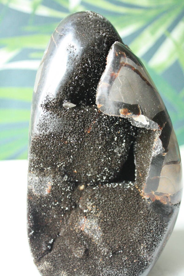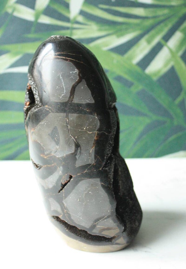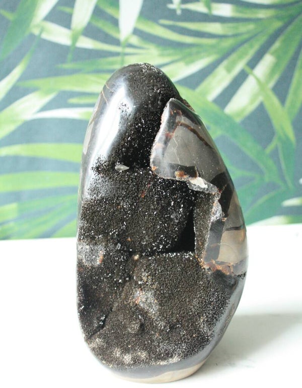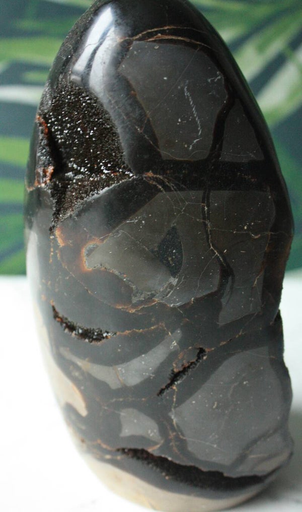 Werking: Septarie heeft een aardende, zuiverende en kalmerende werking. De steen bevordert zelfgenezing, eigenwaarde en tolerantie. Septarie heeft een sterke connectie met de aarde en natuur.