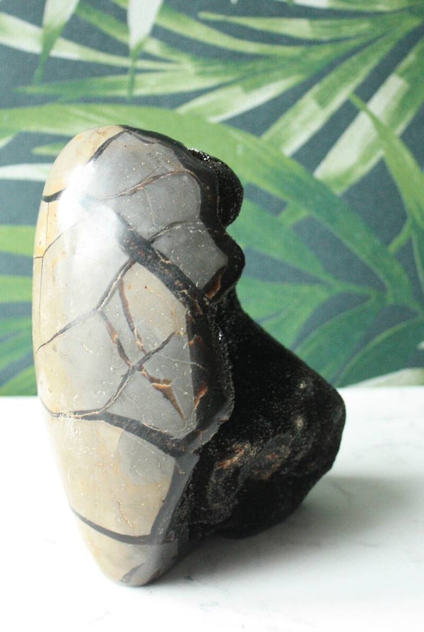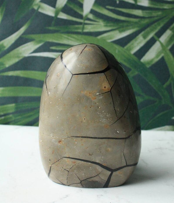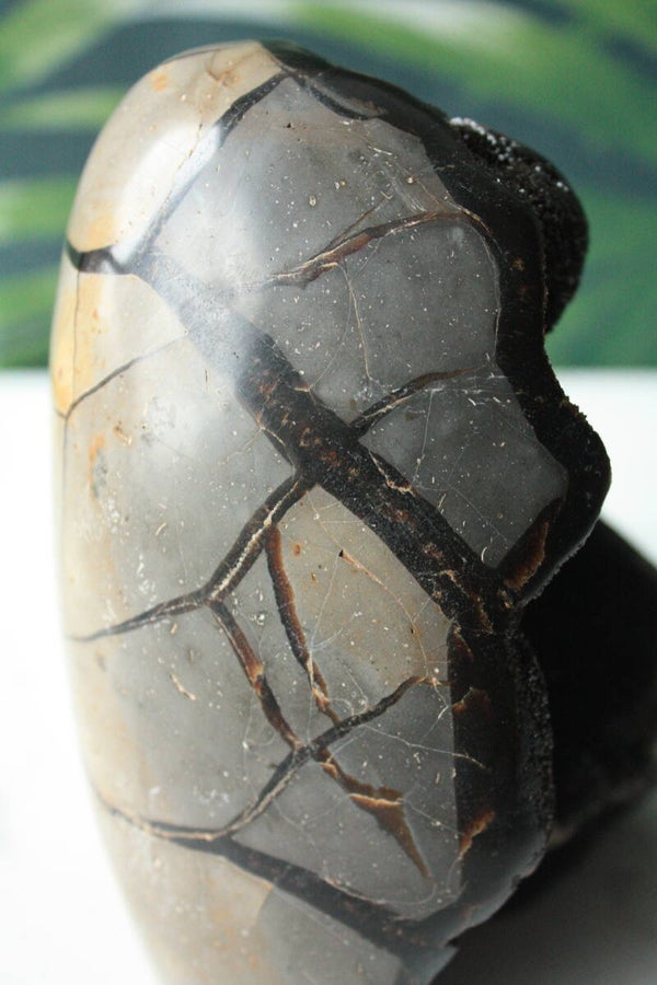 Werking: Septarie heeft een aardende, zuiverende en kalmerende werking. De steen bevordert zelfgenezing, eigenwaarde en tolerantie. Septarie heeft een sterke connectie met de aarde en natuur.