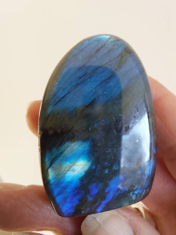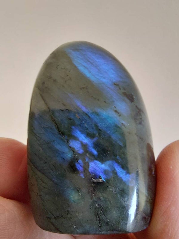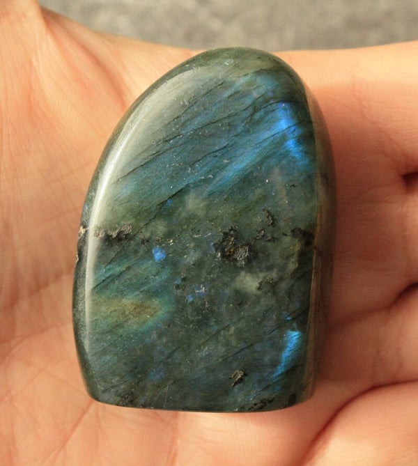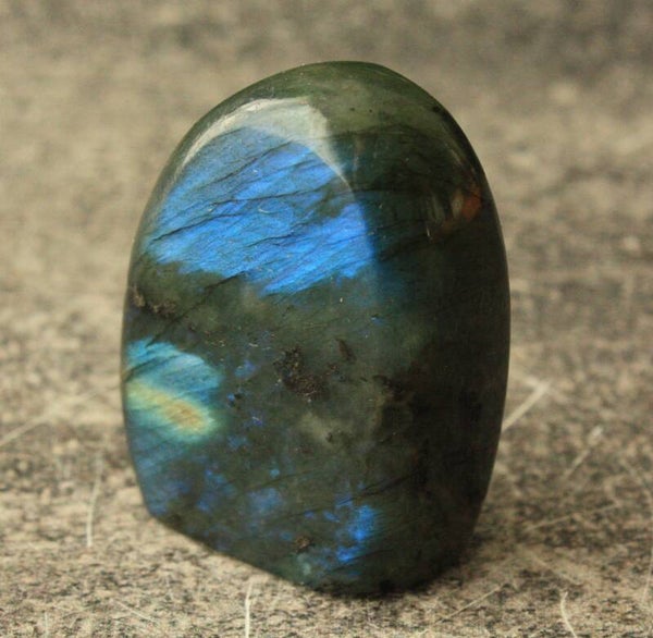 Labradoriet freeform uit Madagascar, aan beide kanten een flash.